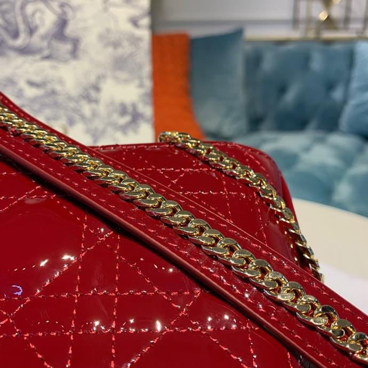 CHRSTN DR Mini Lady DYOR Bag with Chain Gold toned hardware Spring/Summer Collection, Burgundy, For Women Women’s Handbags, 18cm CD M0505OCAL_M42R