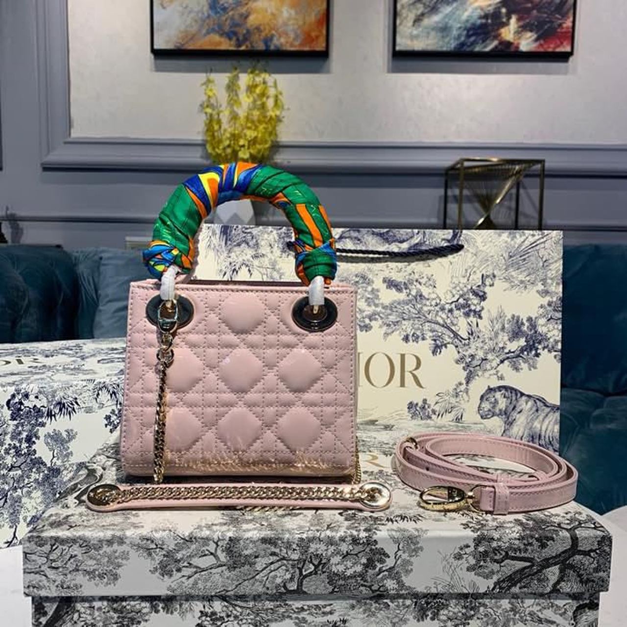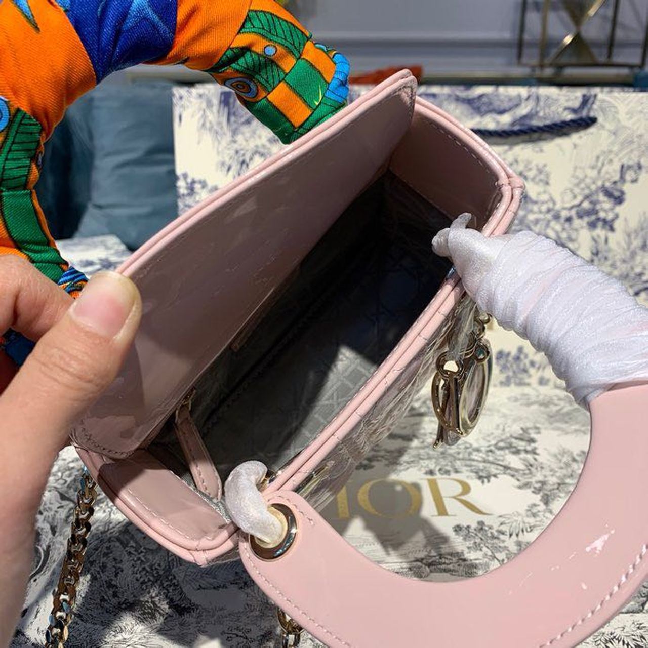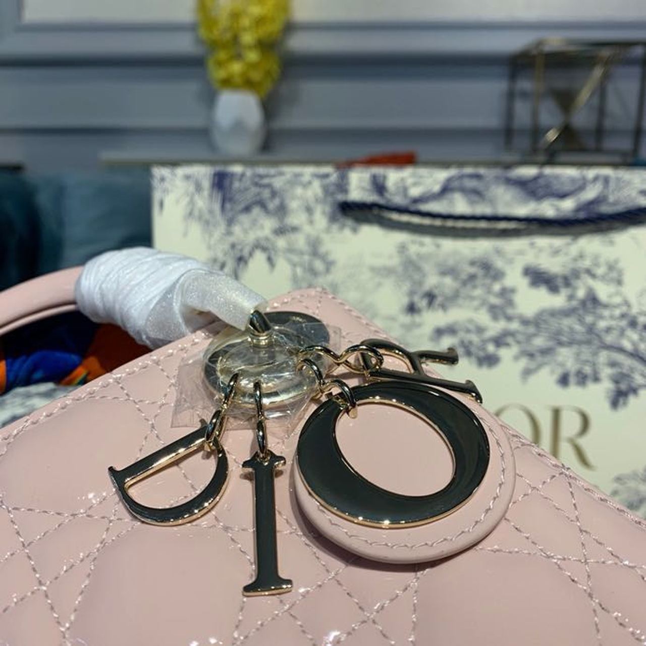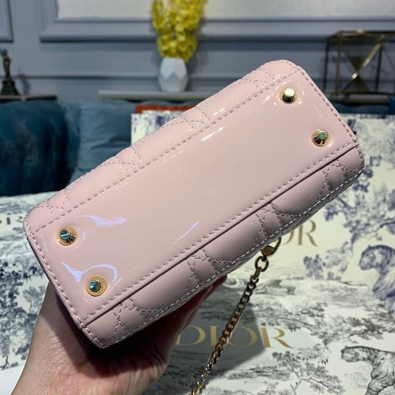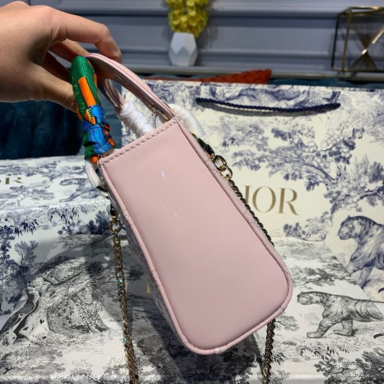 CHRSTN DR Mini Lady DYOR Bag with Chain Gold toned hardware Spring/Summer Collection, Light Pink, For Women Women’s Handbags, 18cm CD M0505OADU_M15P