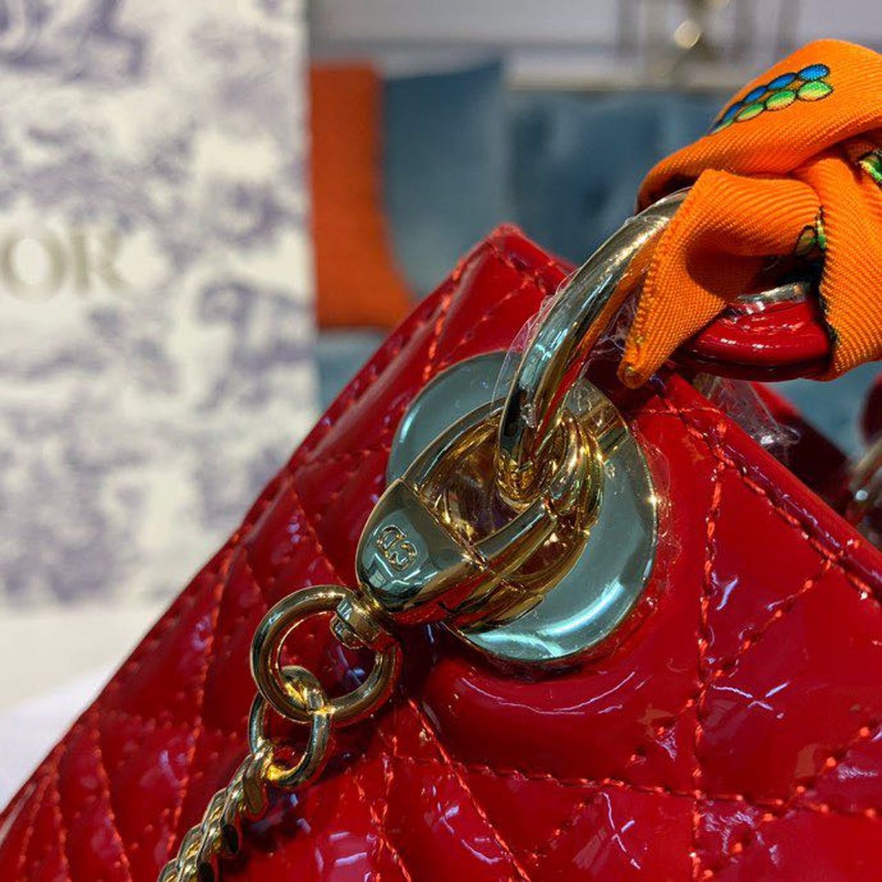 DI Mini Lady Bag with Chain Gold Toned Hardware Spring/Summer Collection, Red, For Women Women’s Handbags, 18cm CD M0505OCAL