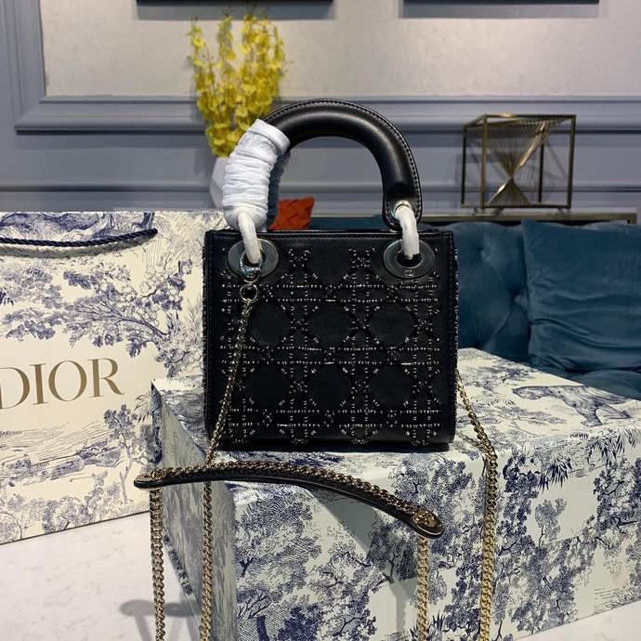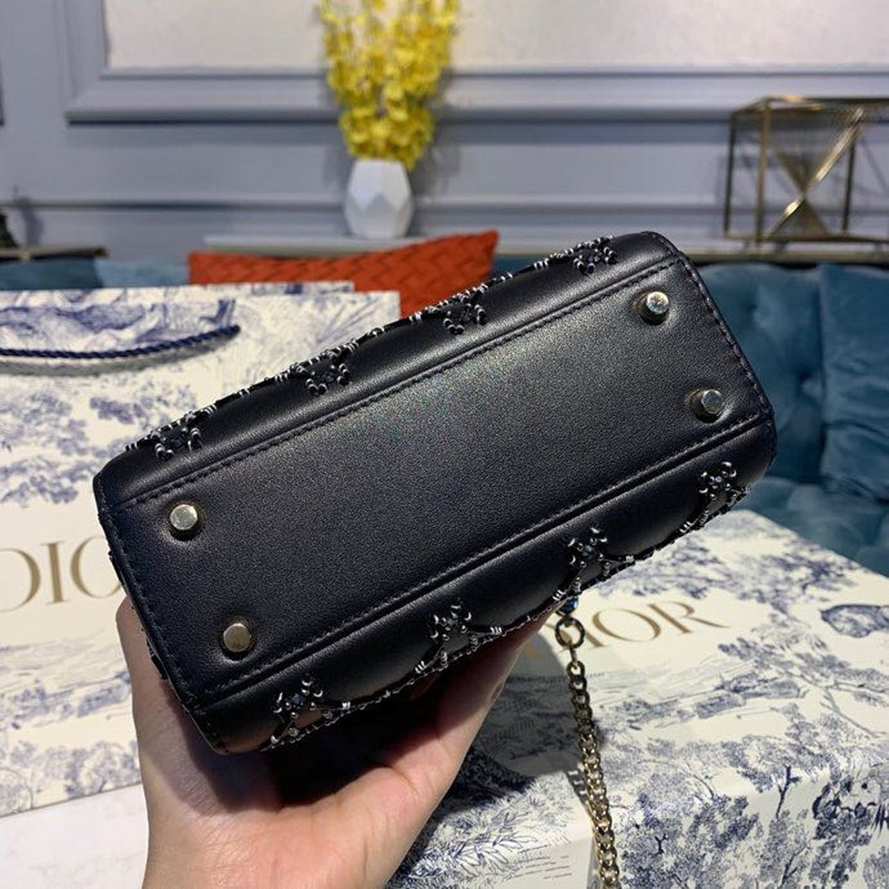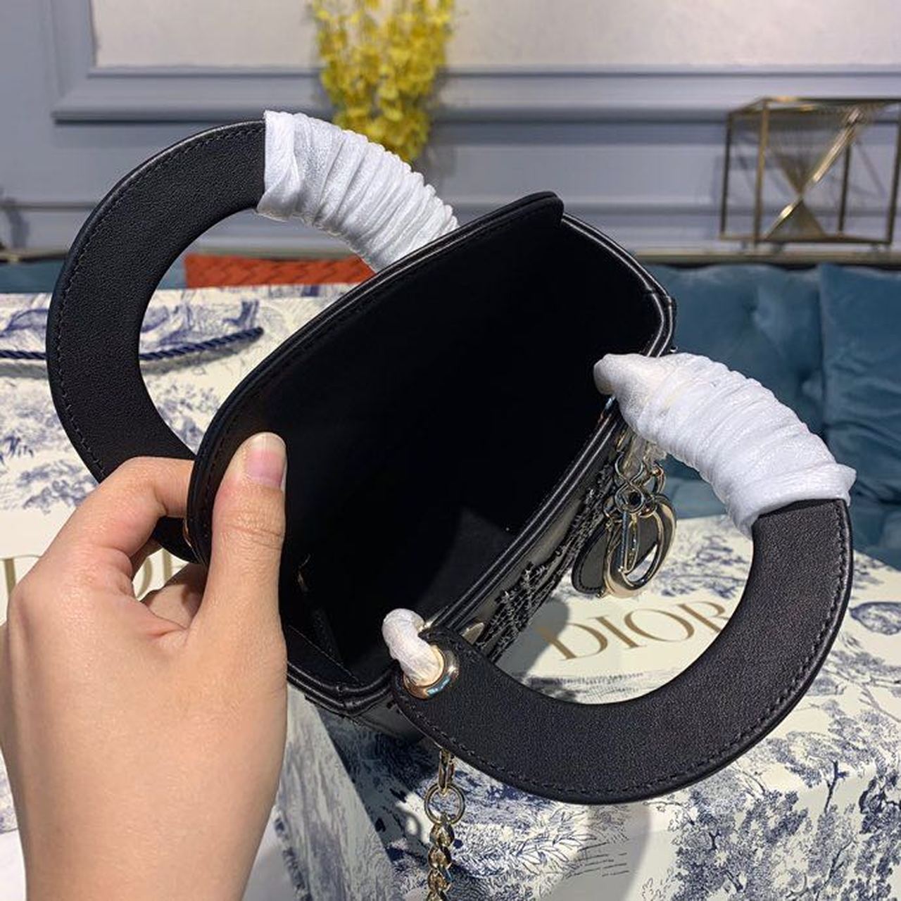 DI Mini Lady Bag with Chain Silver Hardware Spring/Summer Collection, Black, For Women Women’s Handbags, 18cm CD M0500PRTC_M911