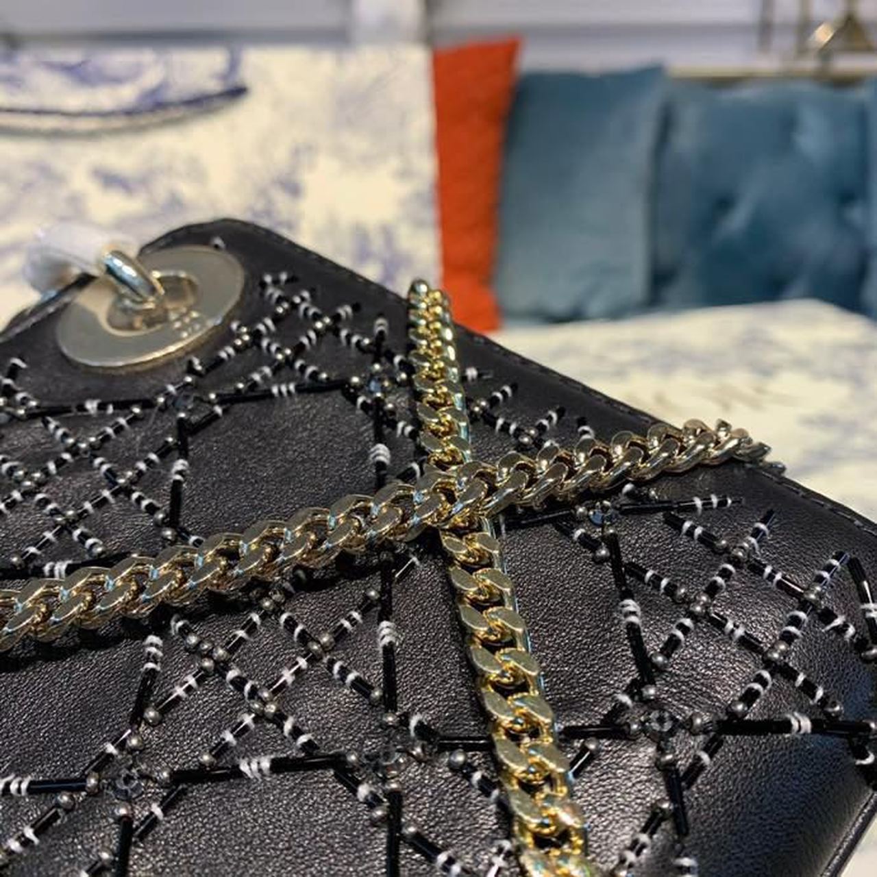 CHRSTN DR Mini Lady DYOR Bag with Chain Silver Hardware Spring/Summer Collection, Black, For Women Women’s Handbags, 18cm CD M0500PRTC_M911