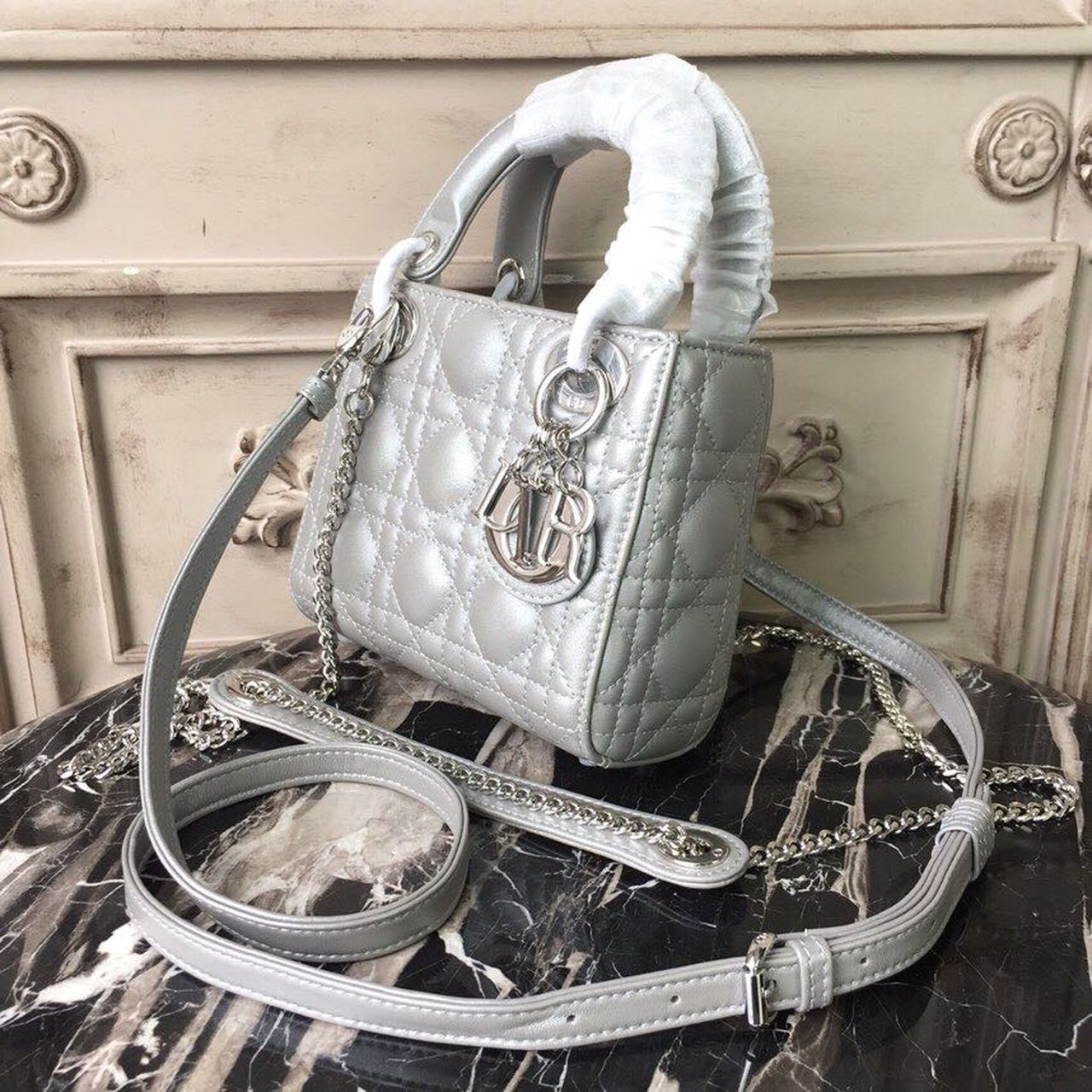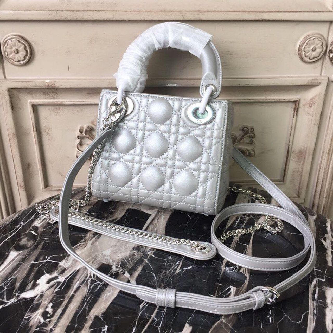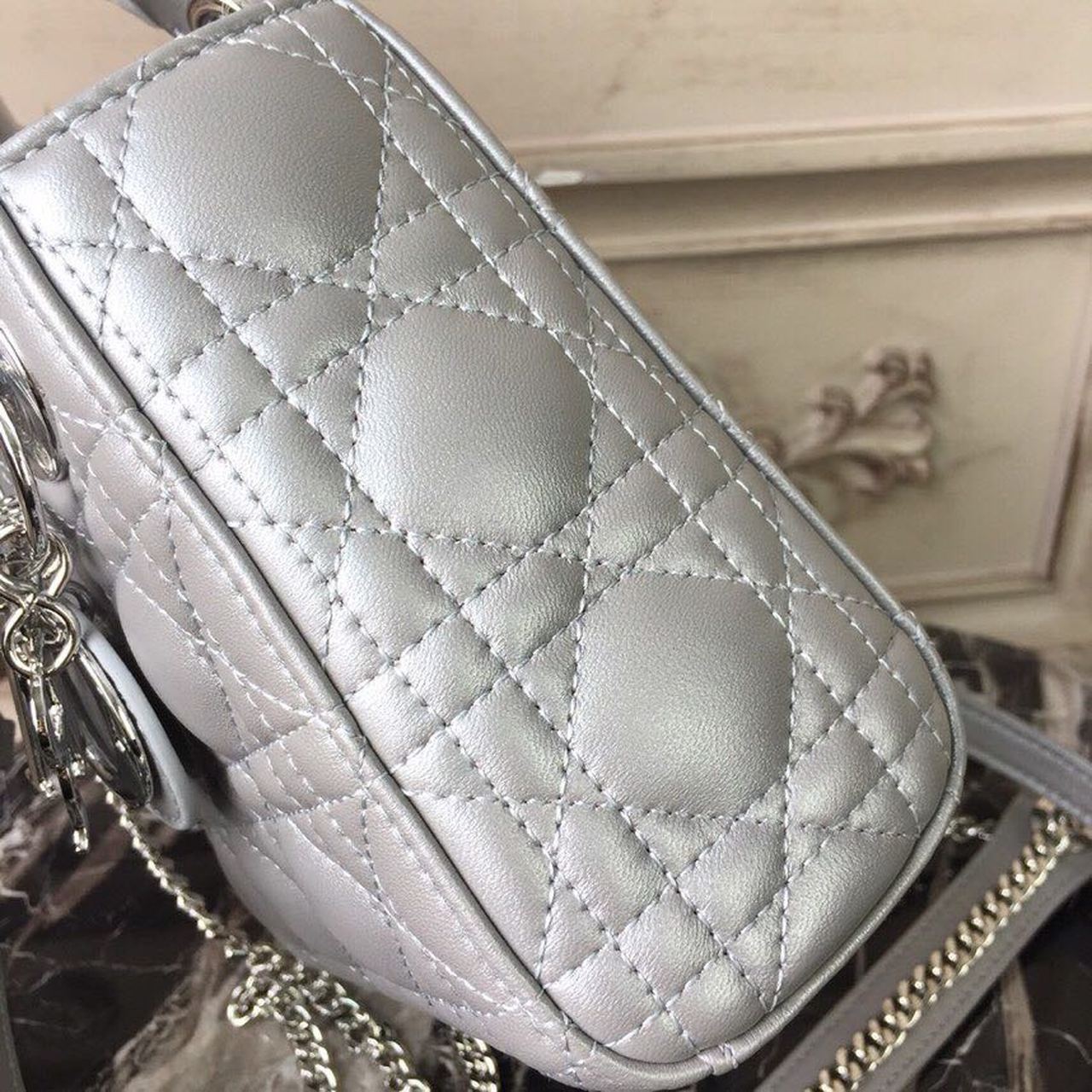 DI Mini Lady Bag with Chain Silver Hardware Spring/Summer Collection, Pearl Gold, For Women Women’s Handbags, 18cm CD