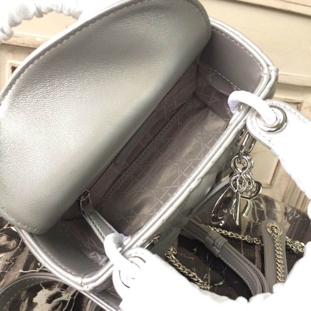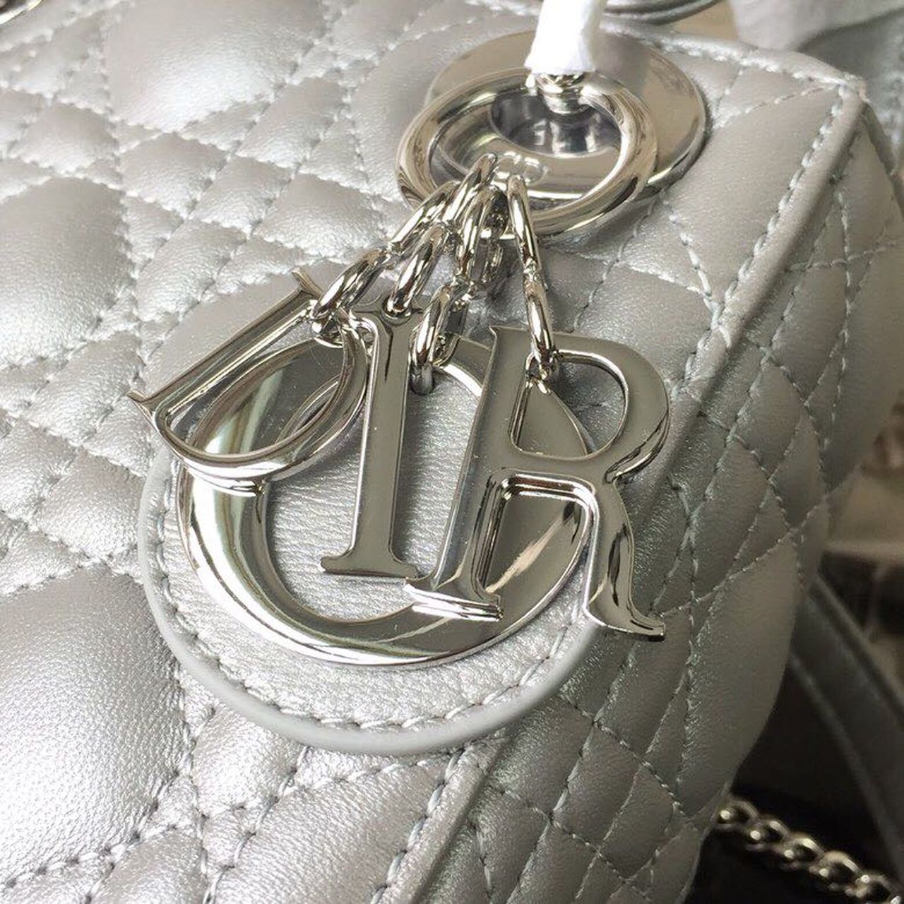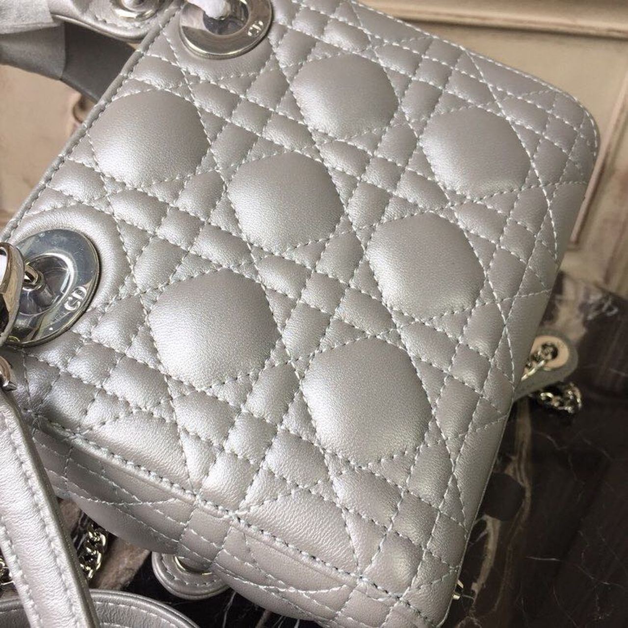 DI Mini Lady Bag with Chain Silver Hardware Spring/Summer Collection, Pearl Gold, For Women Women’s Handbags, 18cm CD