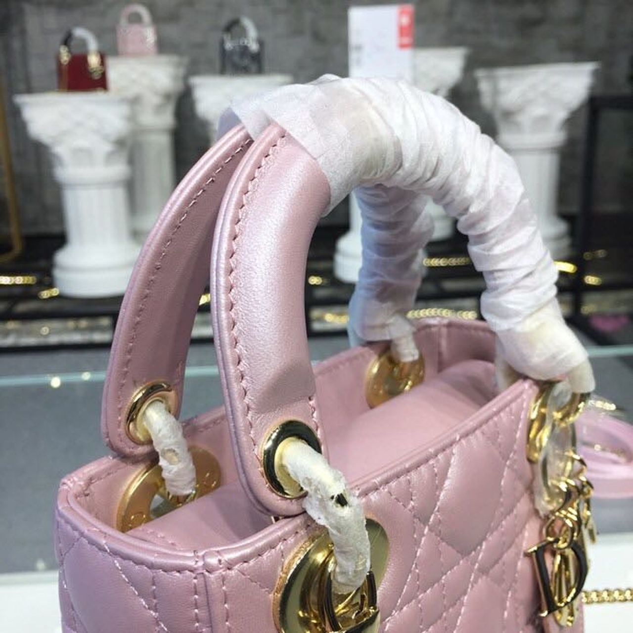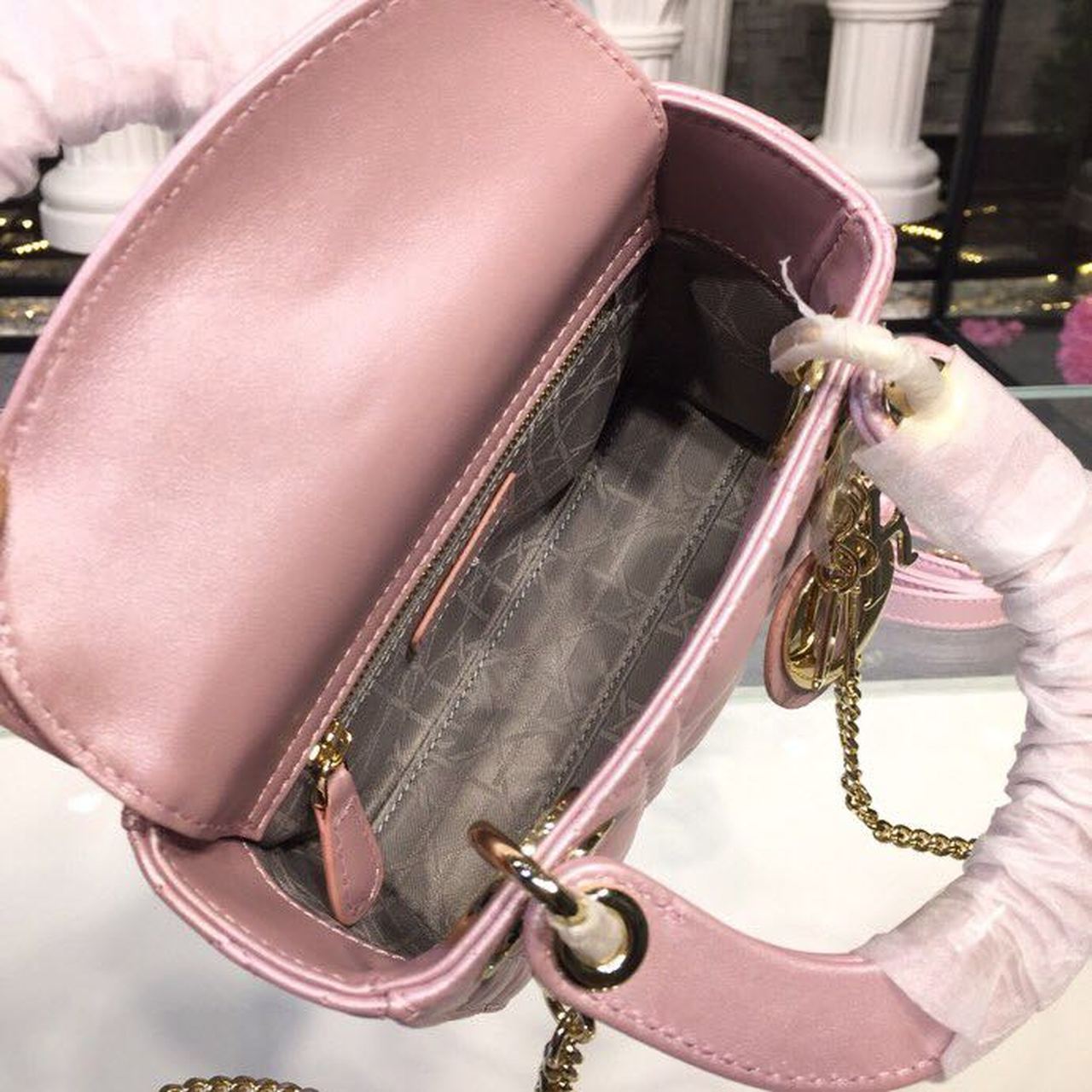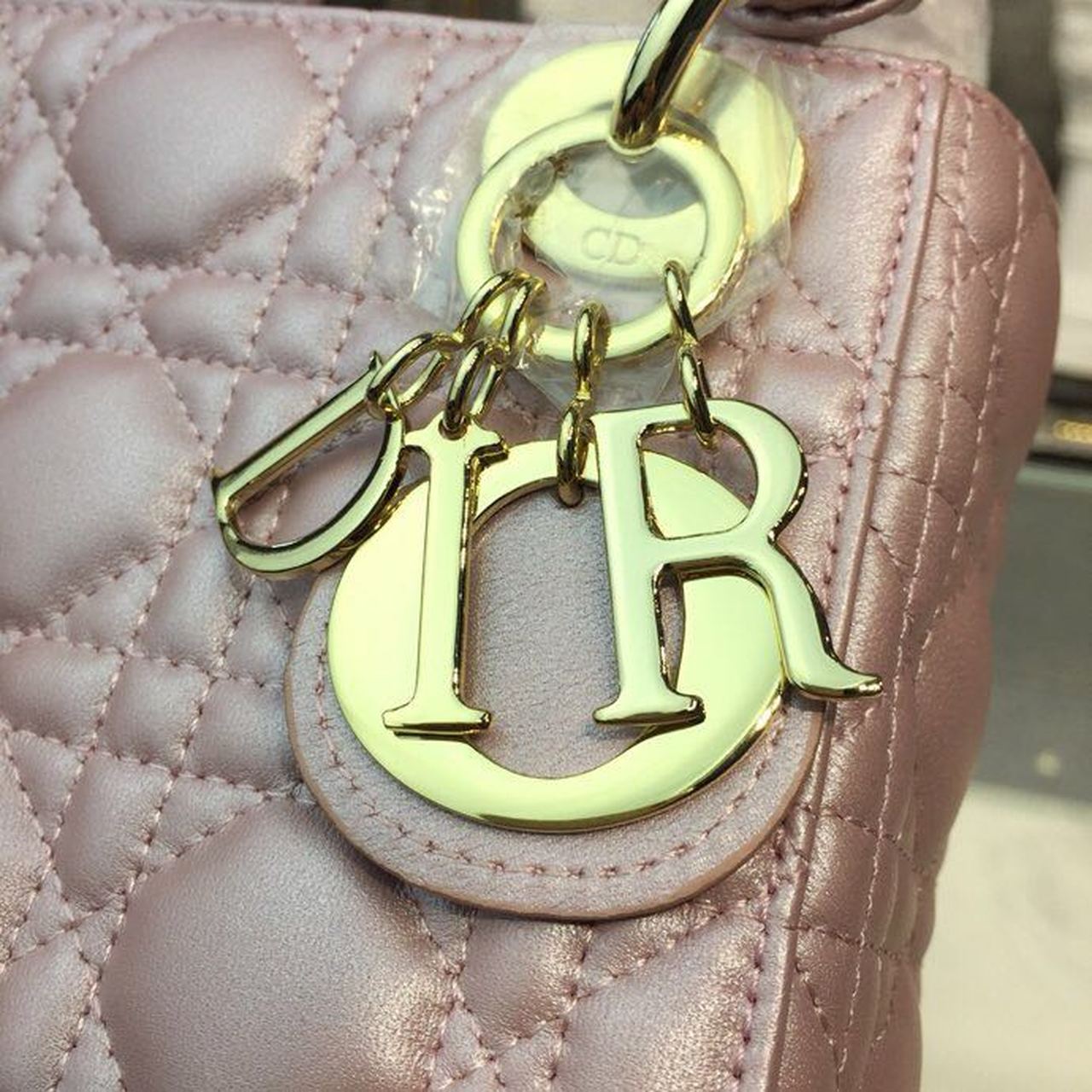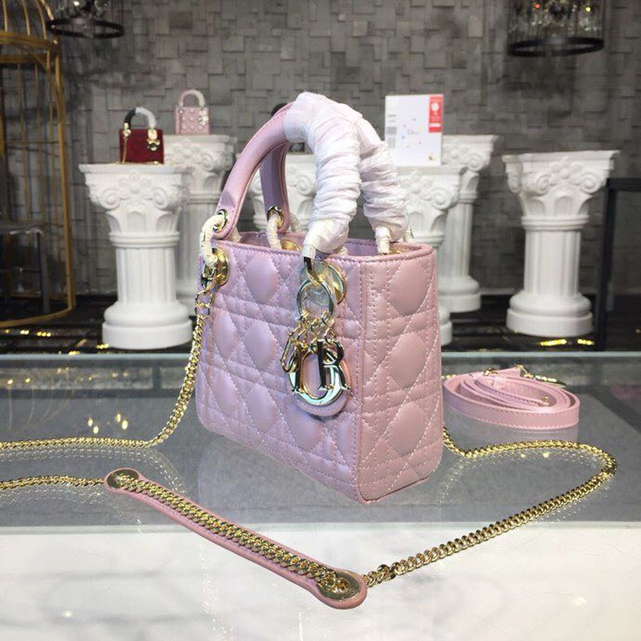 DI Mini Lady Cannage Quilted Bag with Chain Gold Toned Hardware Pink For Women 6.5in/17cm CD