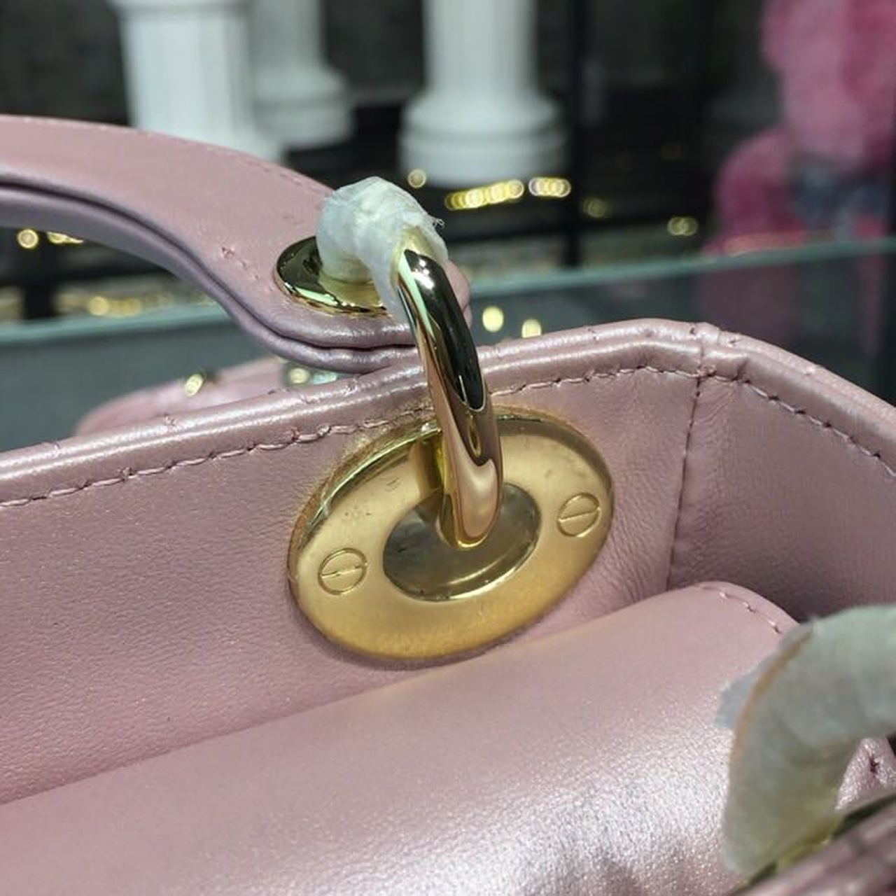 The Lady DYOR handbag epitomizes the House’s vision of elegance and beauty. Refined and sleek, the timeless creation is crafted in blush and covered with Cannage stitching, creating an instantly recognizable quilted texture. The pale gold-finish metal ‘D.I.O.R.’ charms embellish and illuminate its silhouette. Featuring a removable shoulder strap, the miniature Lady DYOR bag can be carried by hand or worn crossbody as an ideal evening wear companion.