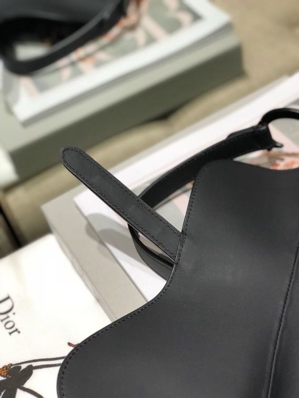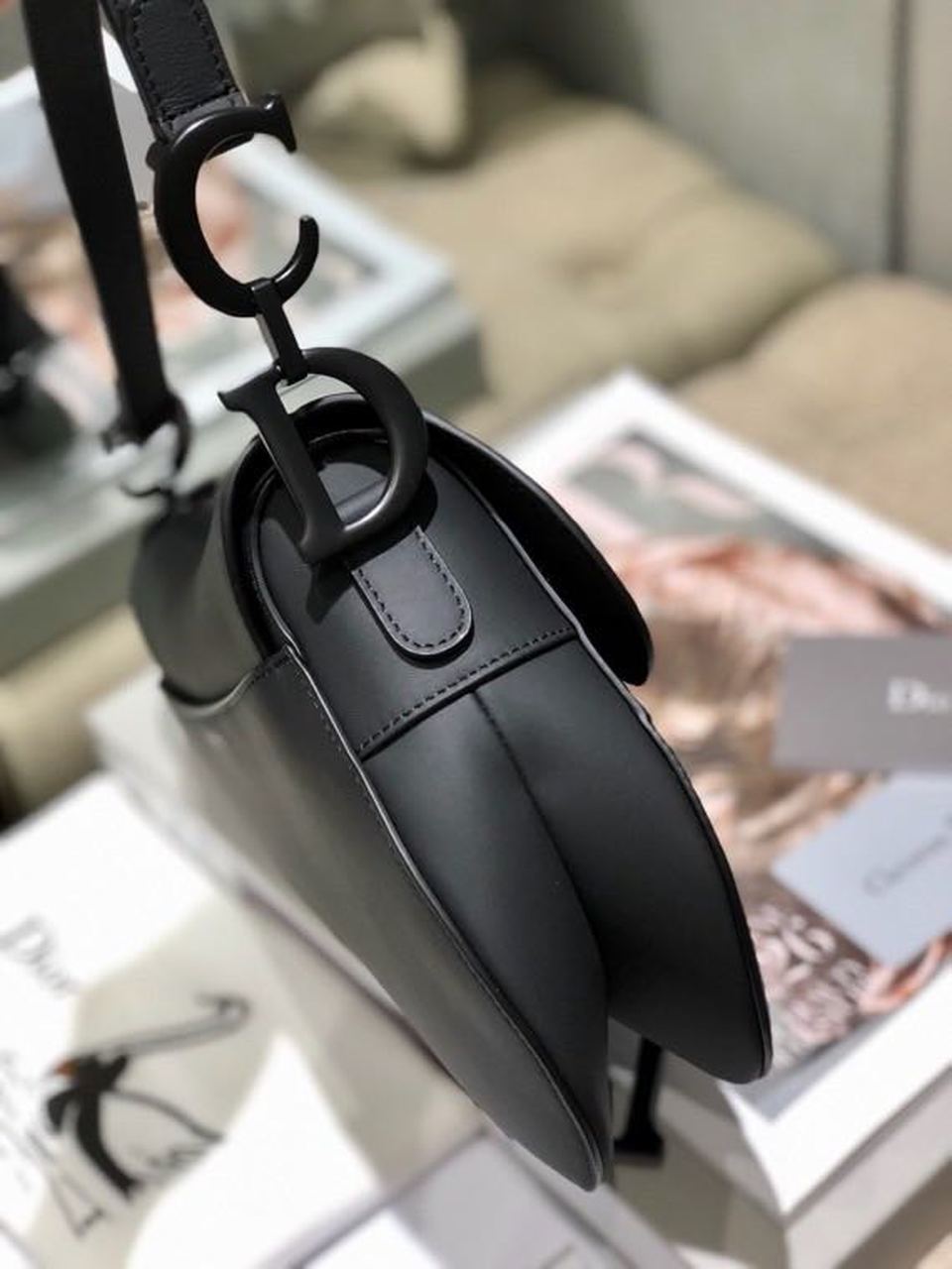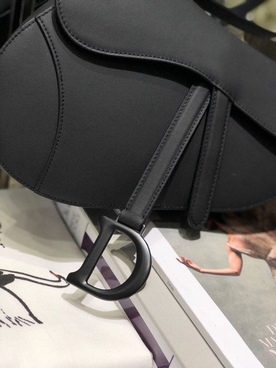 The iconic Saddle bag is reinvented once more by Maria Grazia Chiuri. Featuring a Saddle flap with a magnetic ‘D’ stirrup clasp, it boasts a ‘CD’ signature on each side of the handle. The black ultramatte style is embellished with tonal metal hardware. The Saddle bag may be carried by hand or worn over the shoulder and can be customized with different shoulder straps.