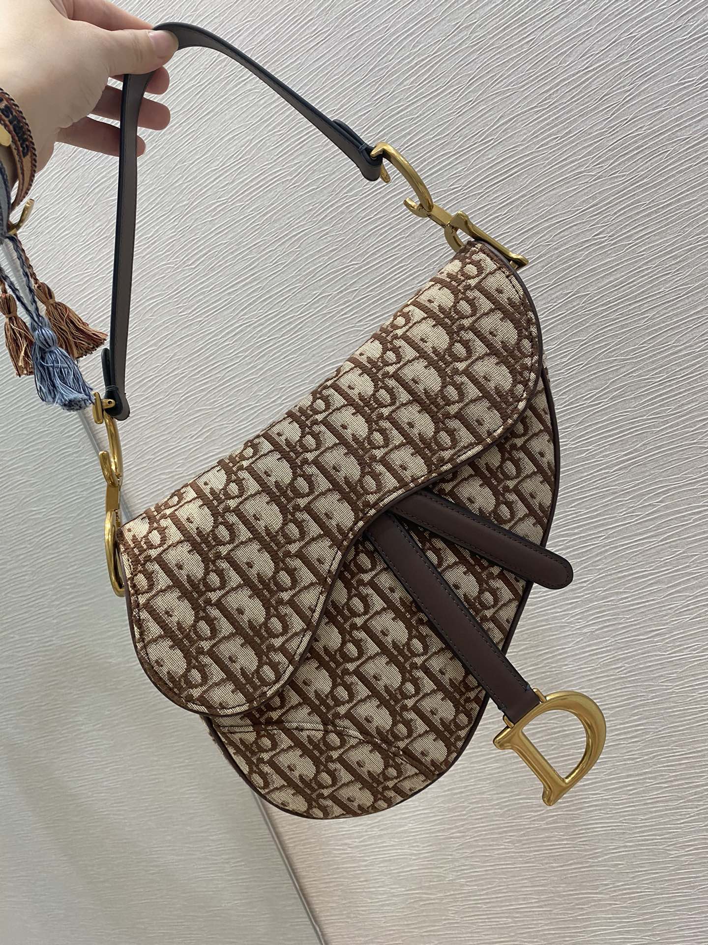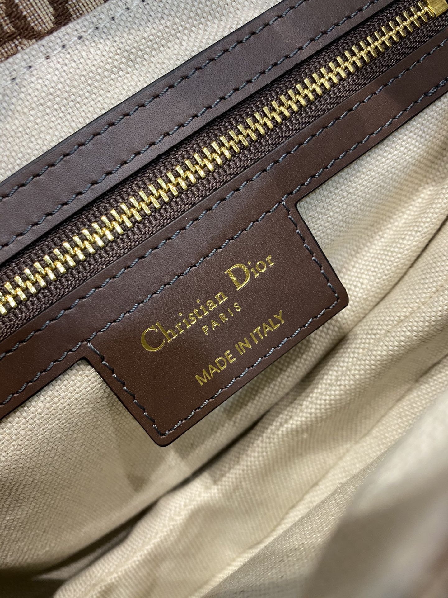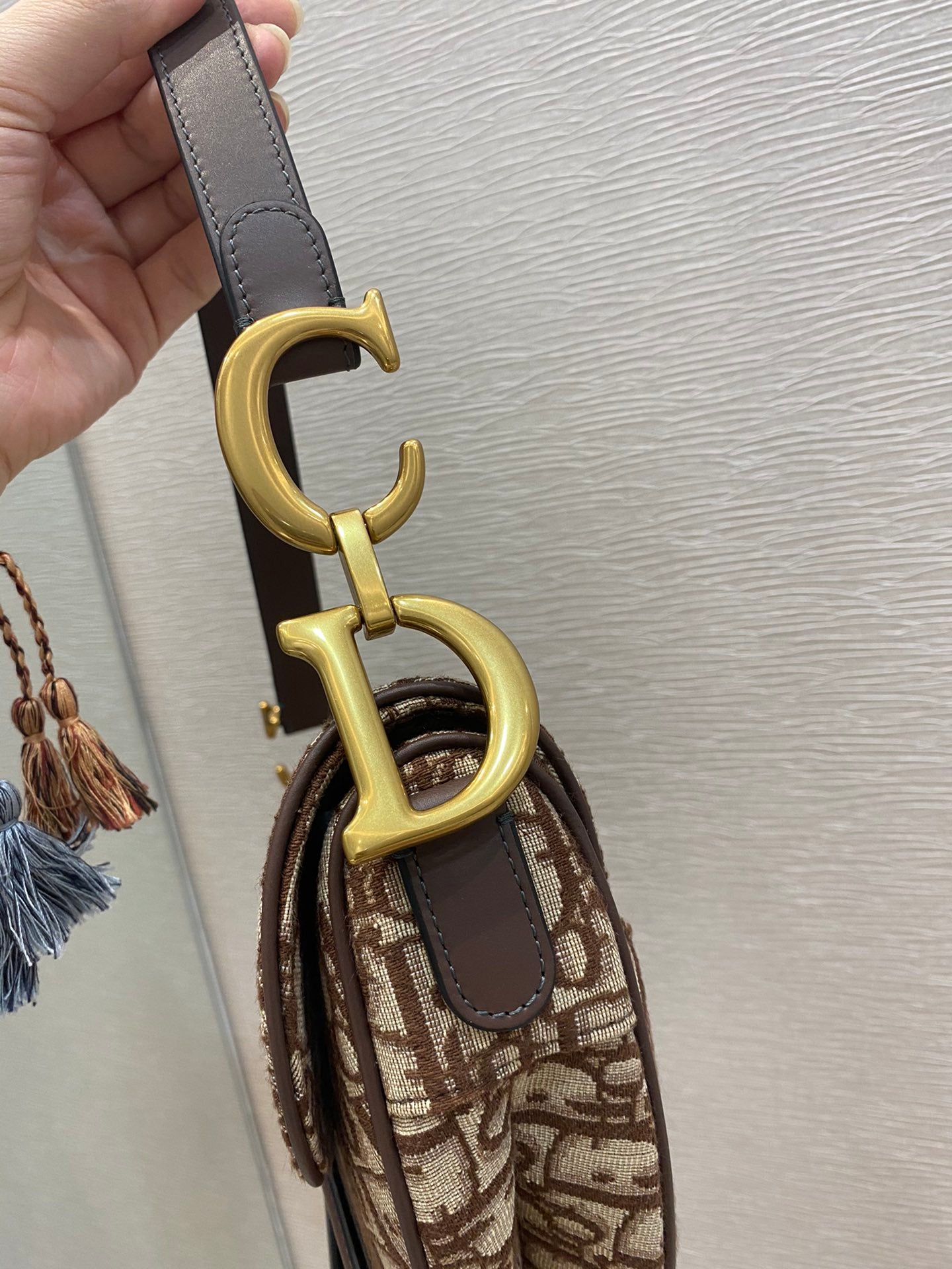 The iconic Saddle bag is reinvented once more by Maria Grazia Chiuri. Featuring a Saddle flap with a magnetic ‘D’ stirrup clasp, it boasts a ‘CD’ signature on each side of the handle. The brown grained style is embellished with antique gold-finish metal hardware. The Saddle bag may be carried by hand or worn over the shoulder and can be customized with different shoulder straps.