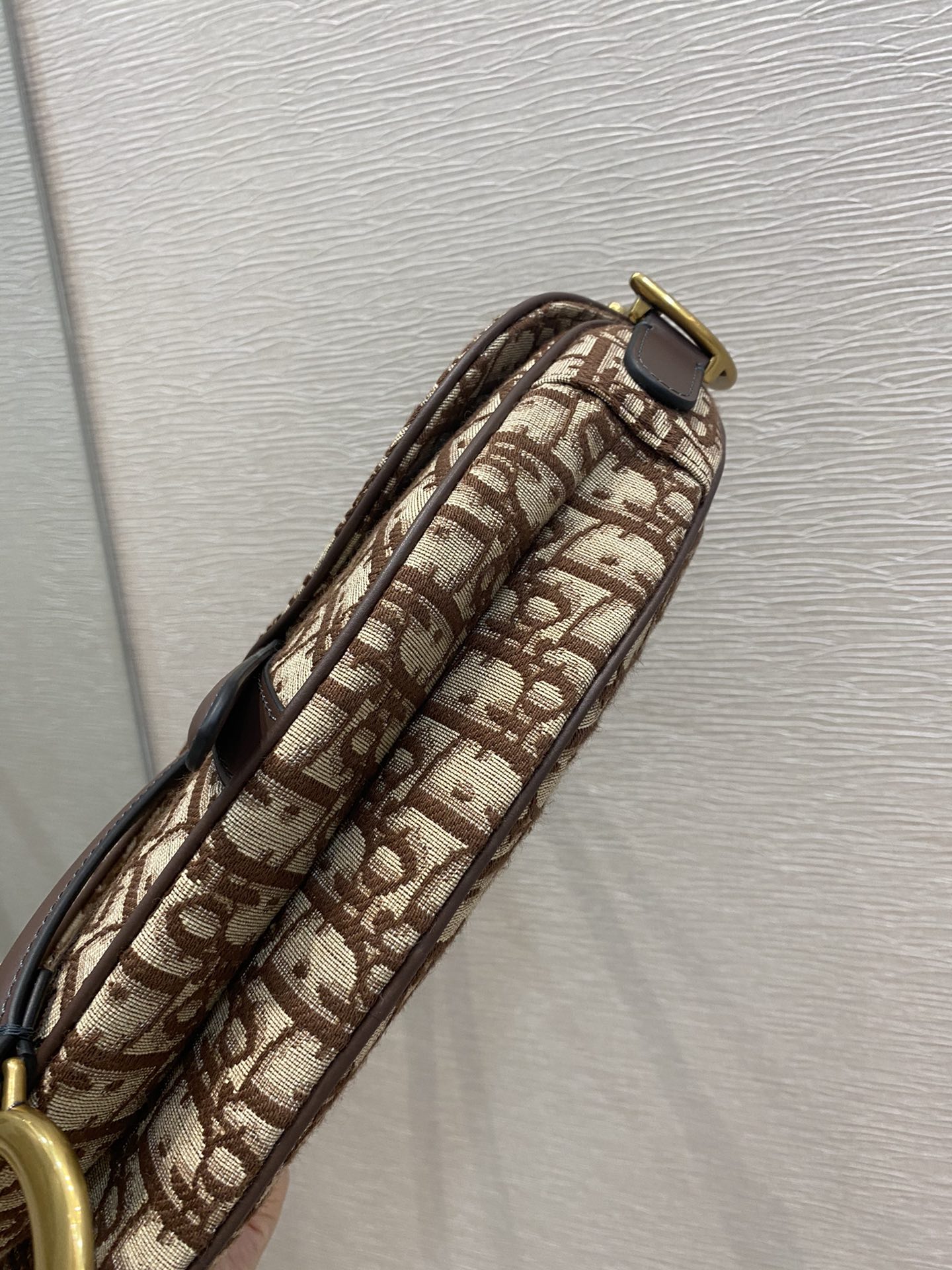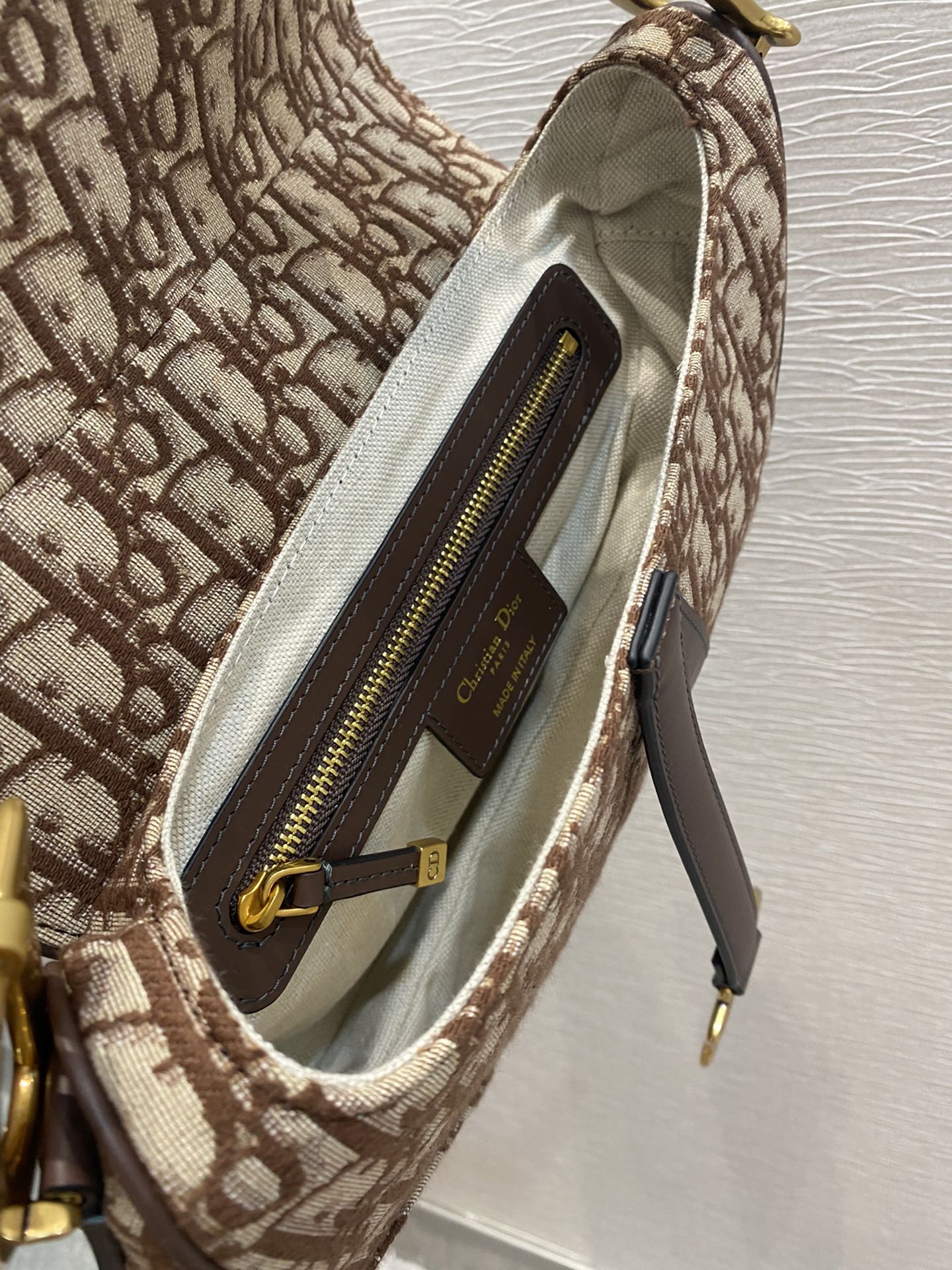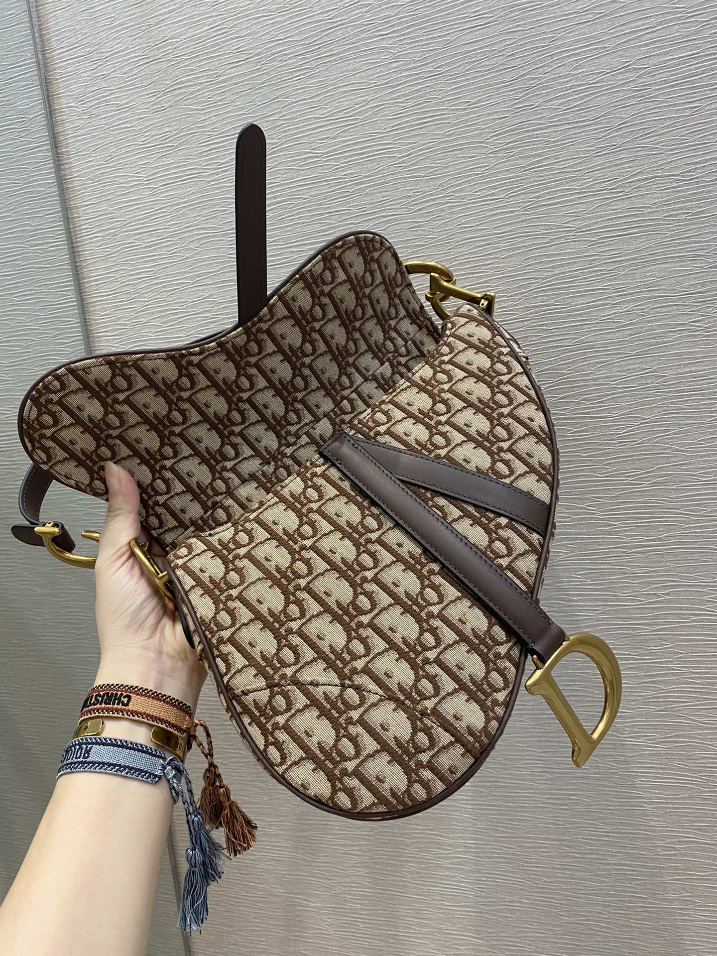 The iconic Saddle bag is reinvented once more by Maria Grazia Chiuri. Featuring a Saddle flap with a magnetic ‘D’ stirrup clasp, it boasts a ‘CD’ signature on each side of the handle. The brown grained style is embellished with antique gold-finish metal hardware. The Saddle bag may be carried by hand or worn over the shoulder and can be customized with different shoulder straps.