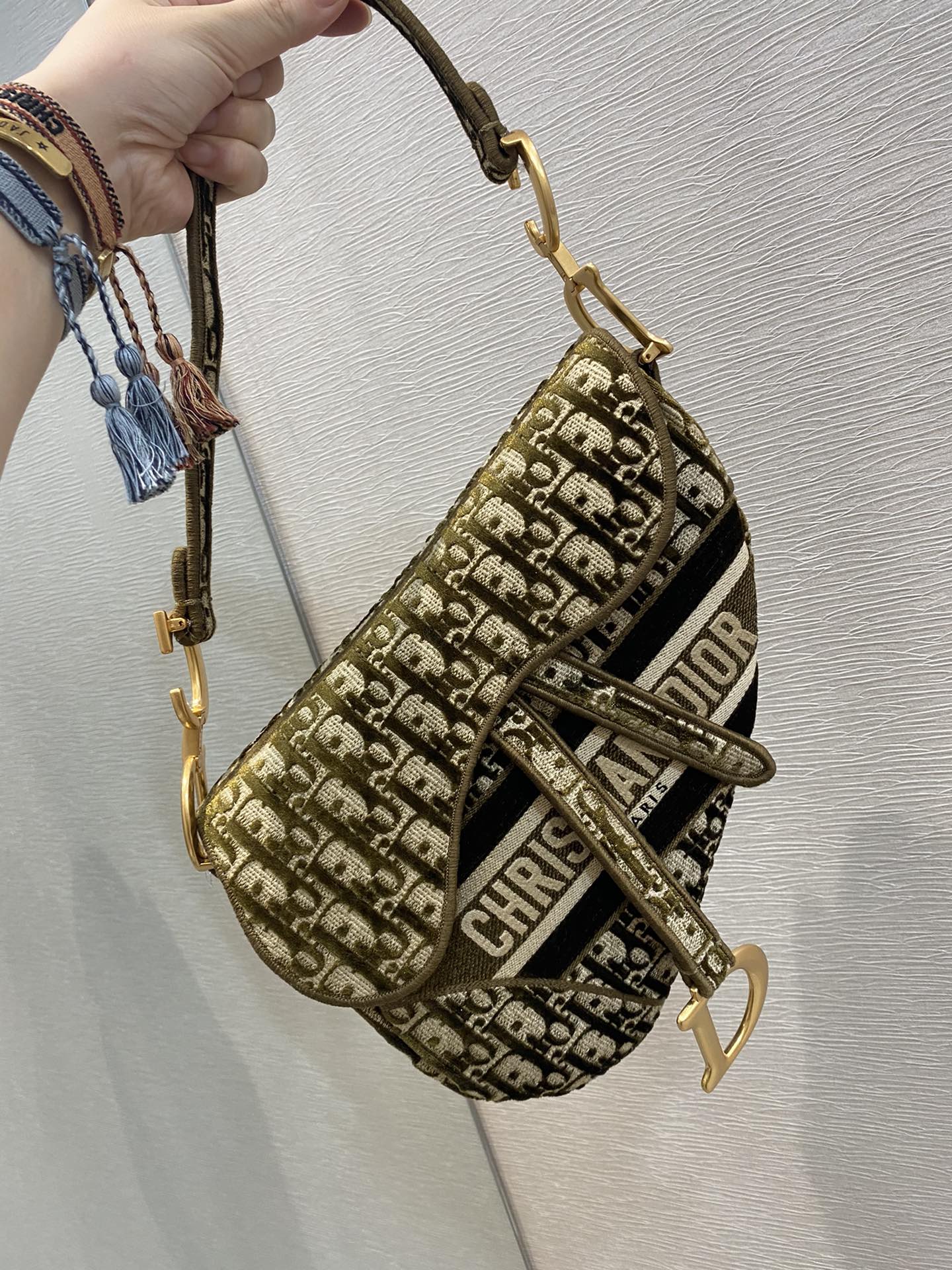 DI Saddle Bag Brown Oblique Canvas Gold Toned Hardware For Women 25cm/10in CD