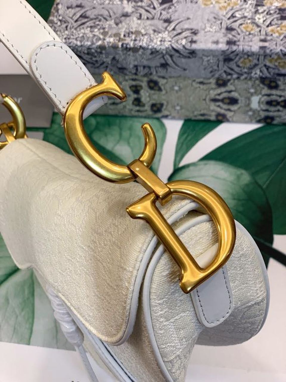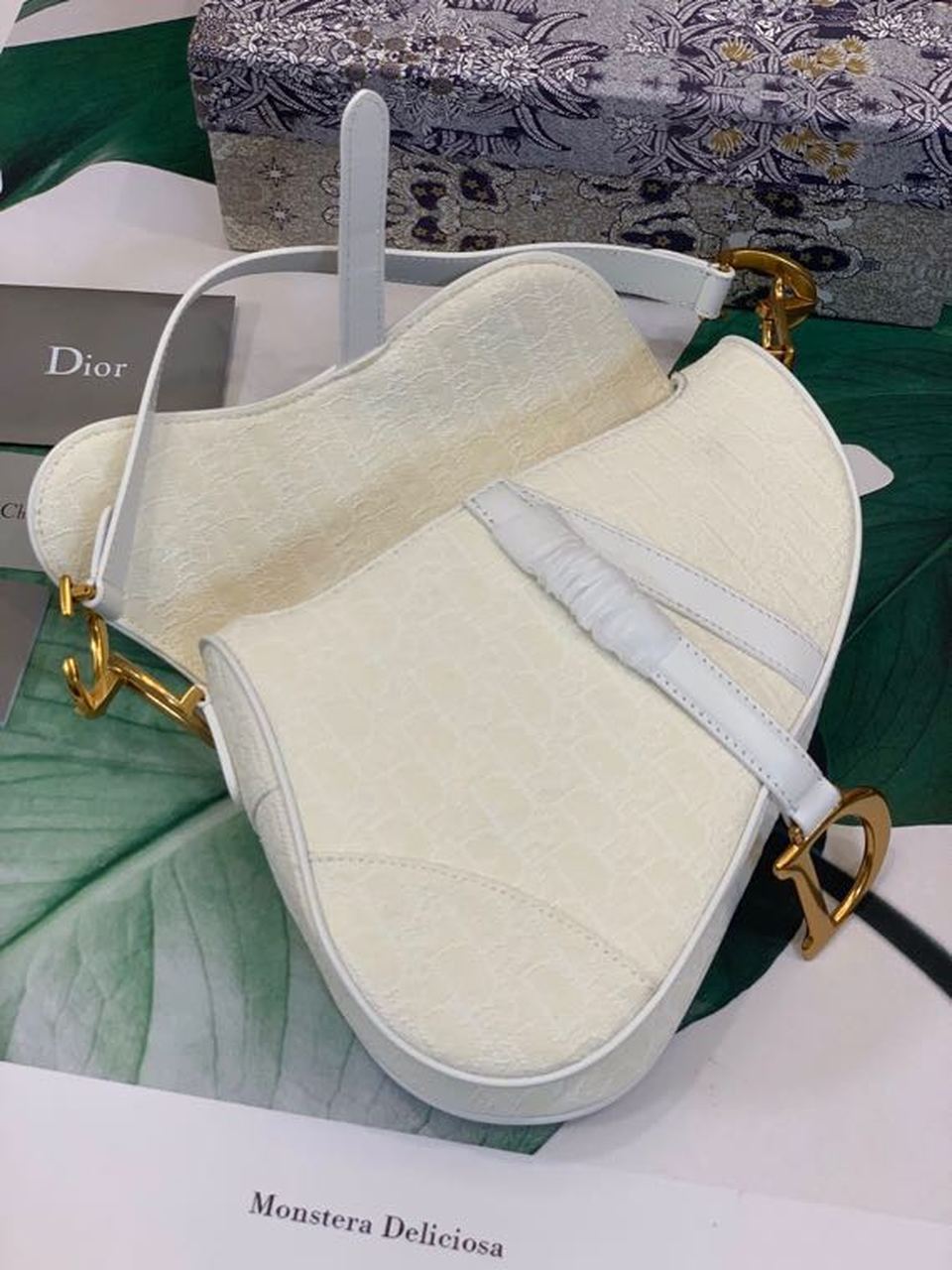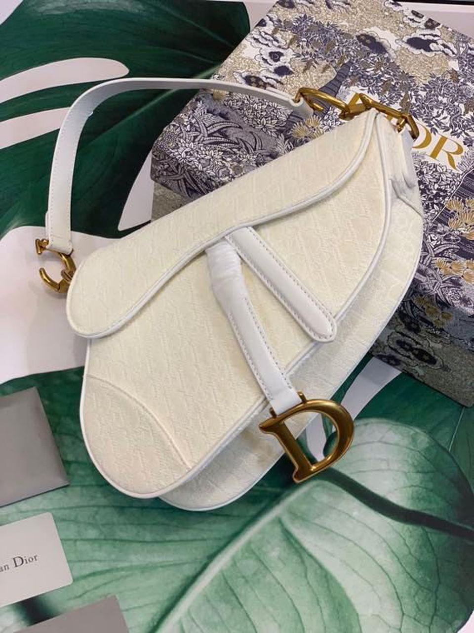 DI Saddle Bag White Oblique Embroidered Canvas Gold Toned Hardware For Women 25cm/10in CD