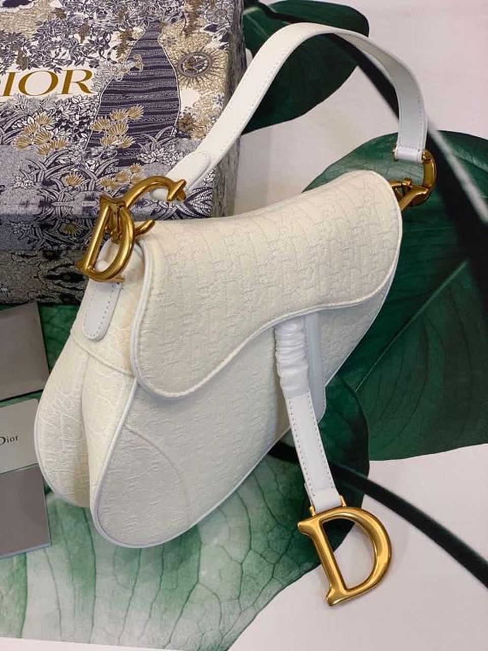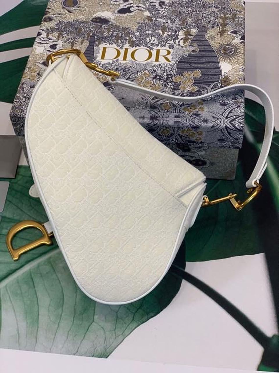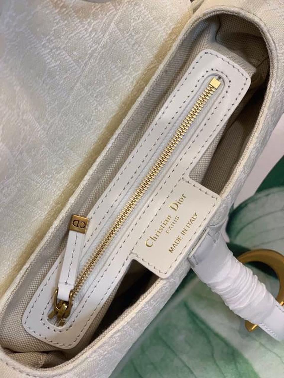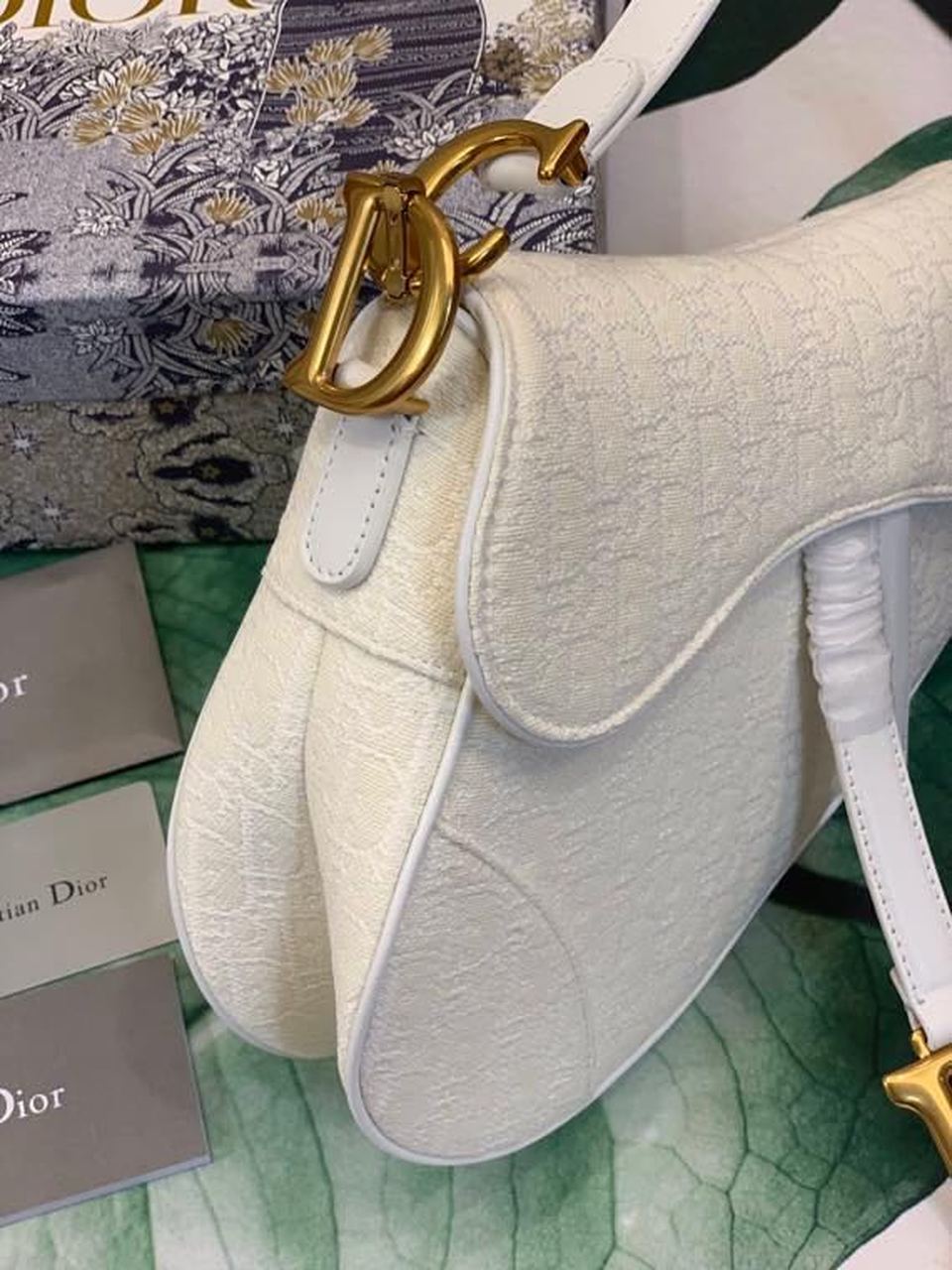 DI Saddle Bag White Oblique Embroidered Canvas Gold Toned Hardware For Women 25cm/10in CD