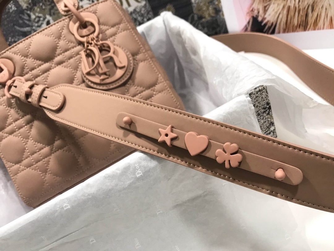 The Lady DYOR My ABCDYOR bag epitomizes DYOR’s vision of elegance and beauty. Sleek and refined, the timeless style is crafted in black ultramatte material with Cannage stitching, creating the instantly recognizable quilted texture. Tonal metal ‘D.I.O.R.’ charms further embellish its silhouette with an elegant allure. Featuring a shoulder strap that can be personalized with badges, the small, unique design may be carried by hand or worn crossbody.