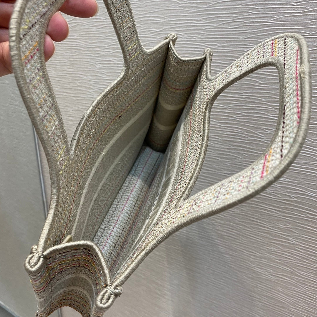 CHRSTN DR Small DYOR Book Tote Bag Canvas Stripes Embroidery For Women 23cm/9in CD
