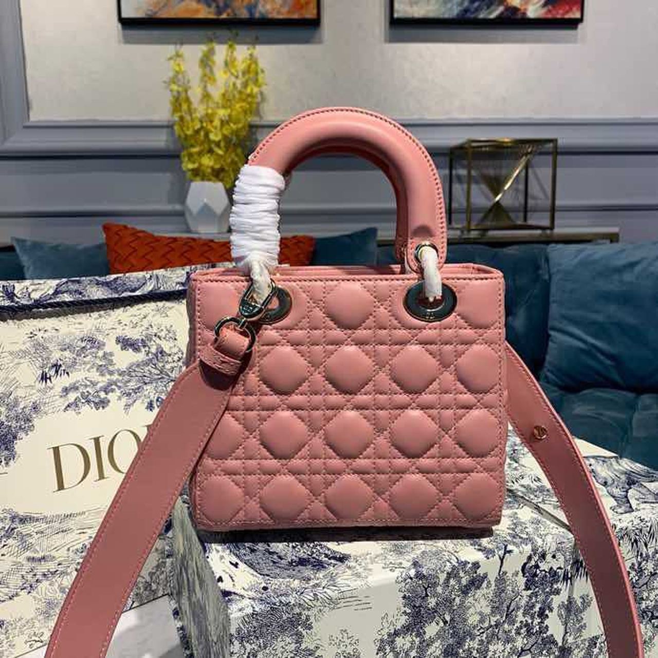 DI Small Lady Bag Blush Cannage Sorbet Pink For Women 8in/20cm CD