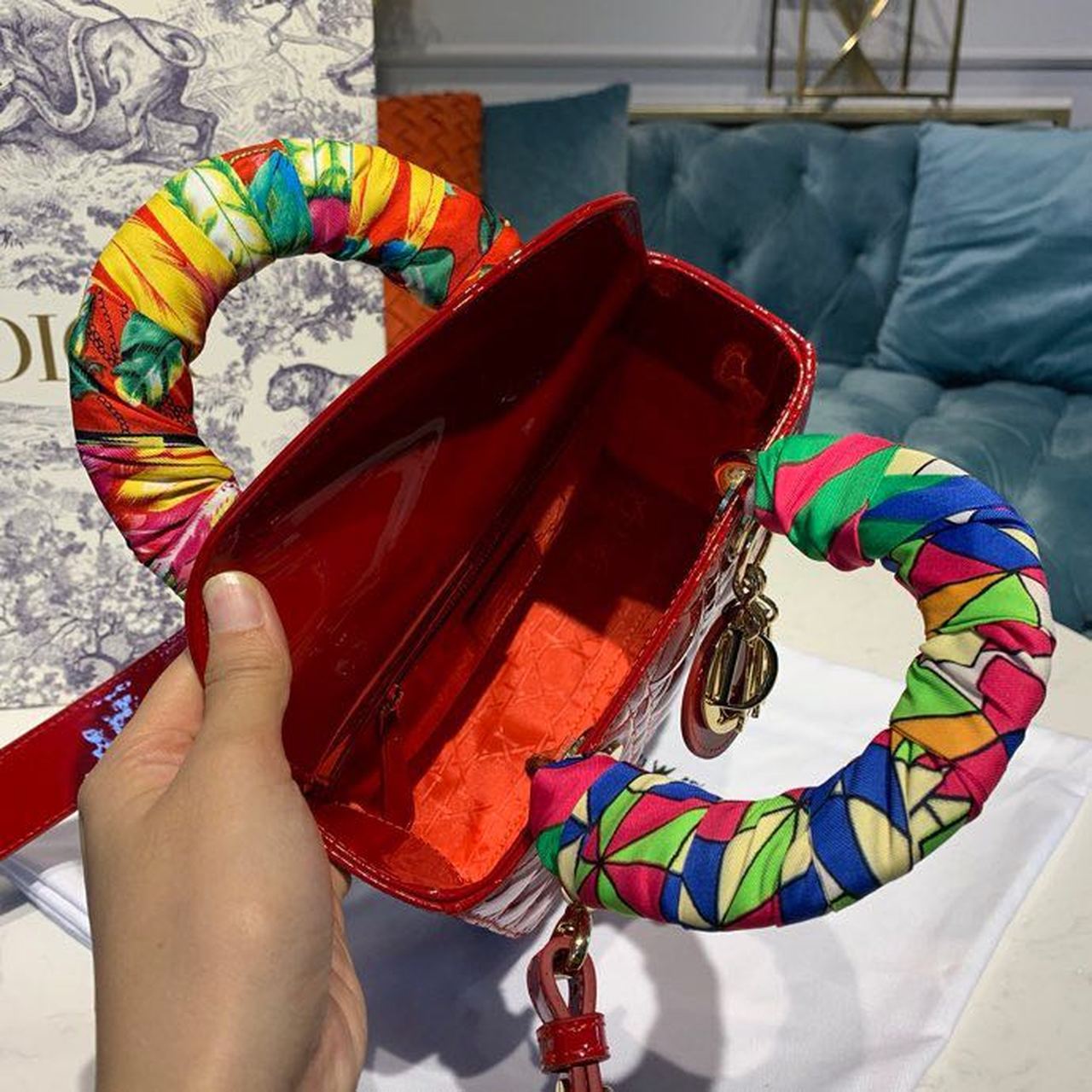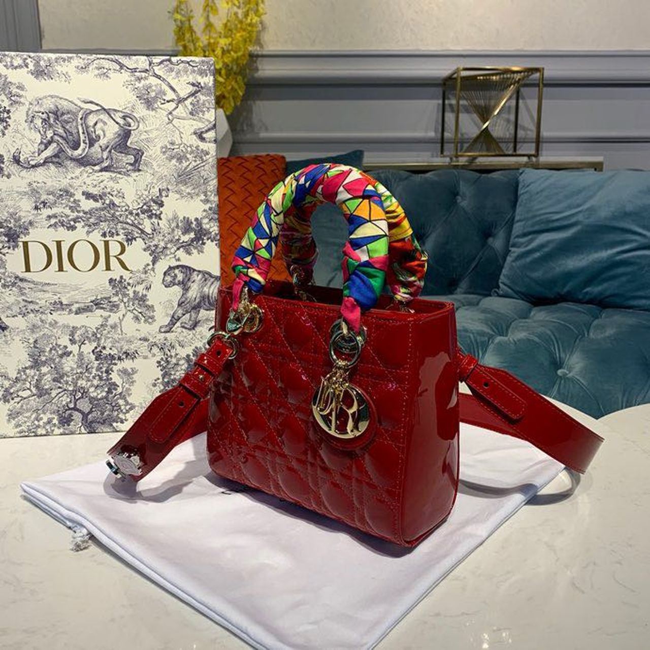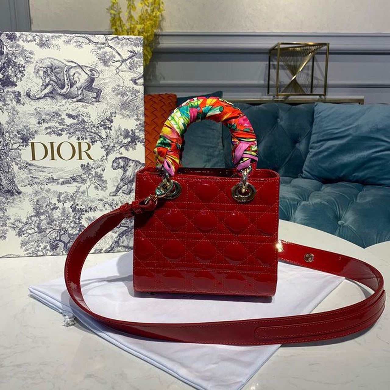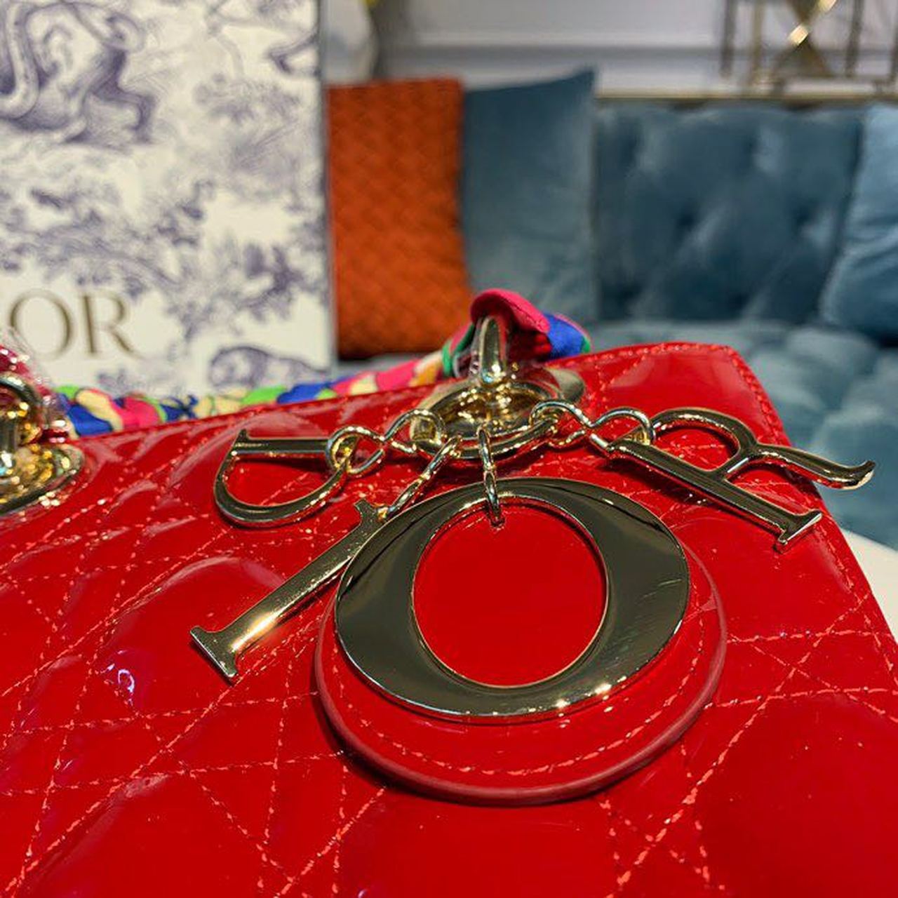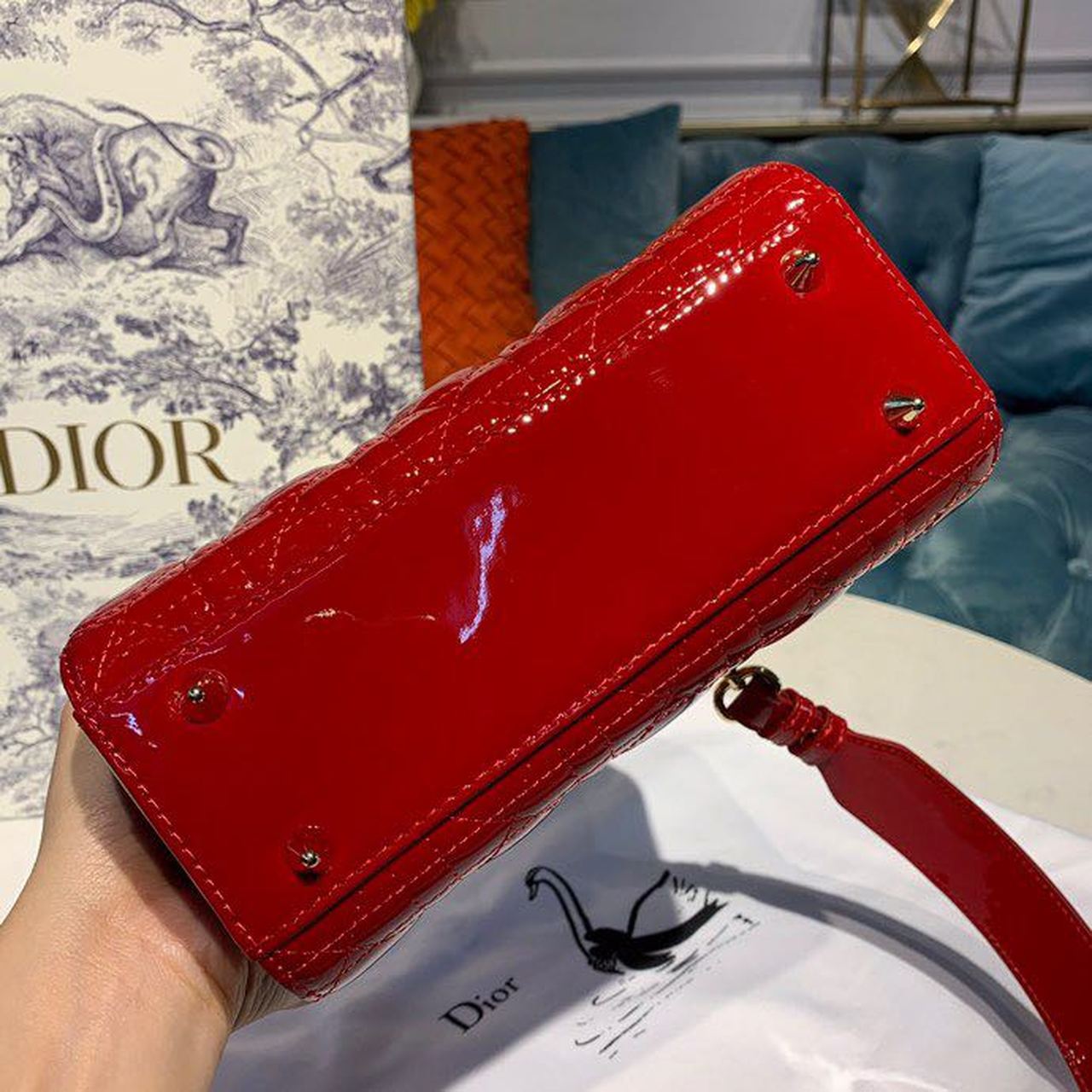 CHRSTN DR Small Lady DYOR Bag Cherry Red Patent Cannage For Women 20cm/8in CD M0531OWCB_M323