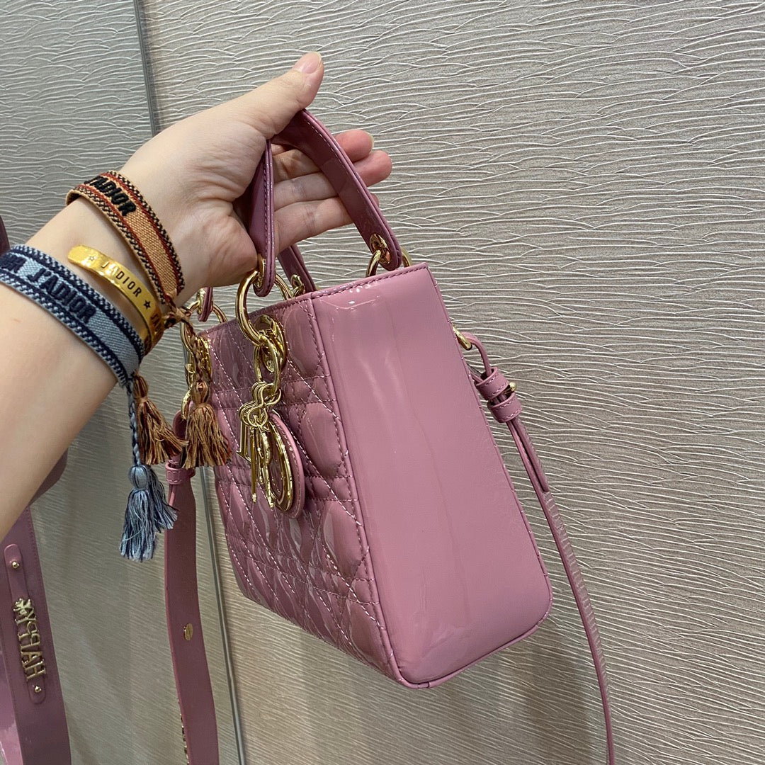 DI Small Lady Bag Clutch Gold Toned Hardware Pink For Women 8in/20cm CD