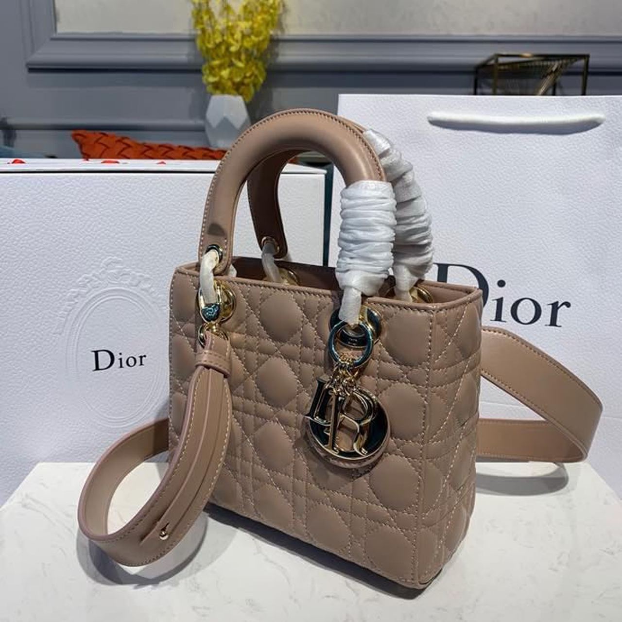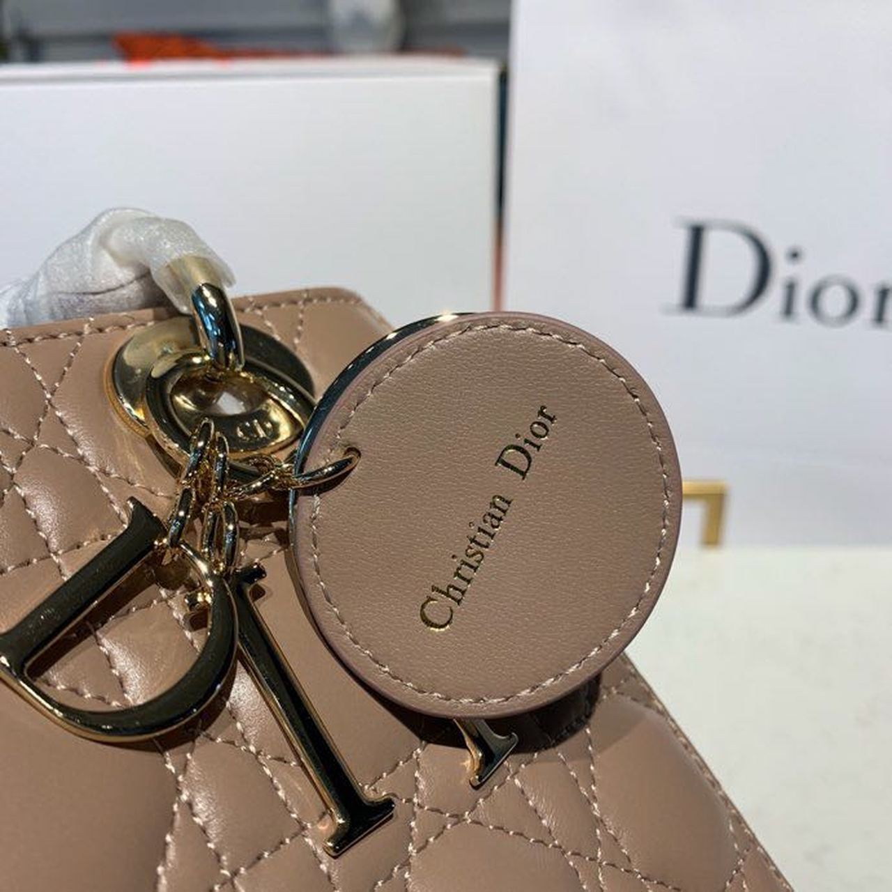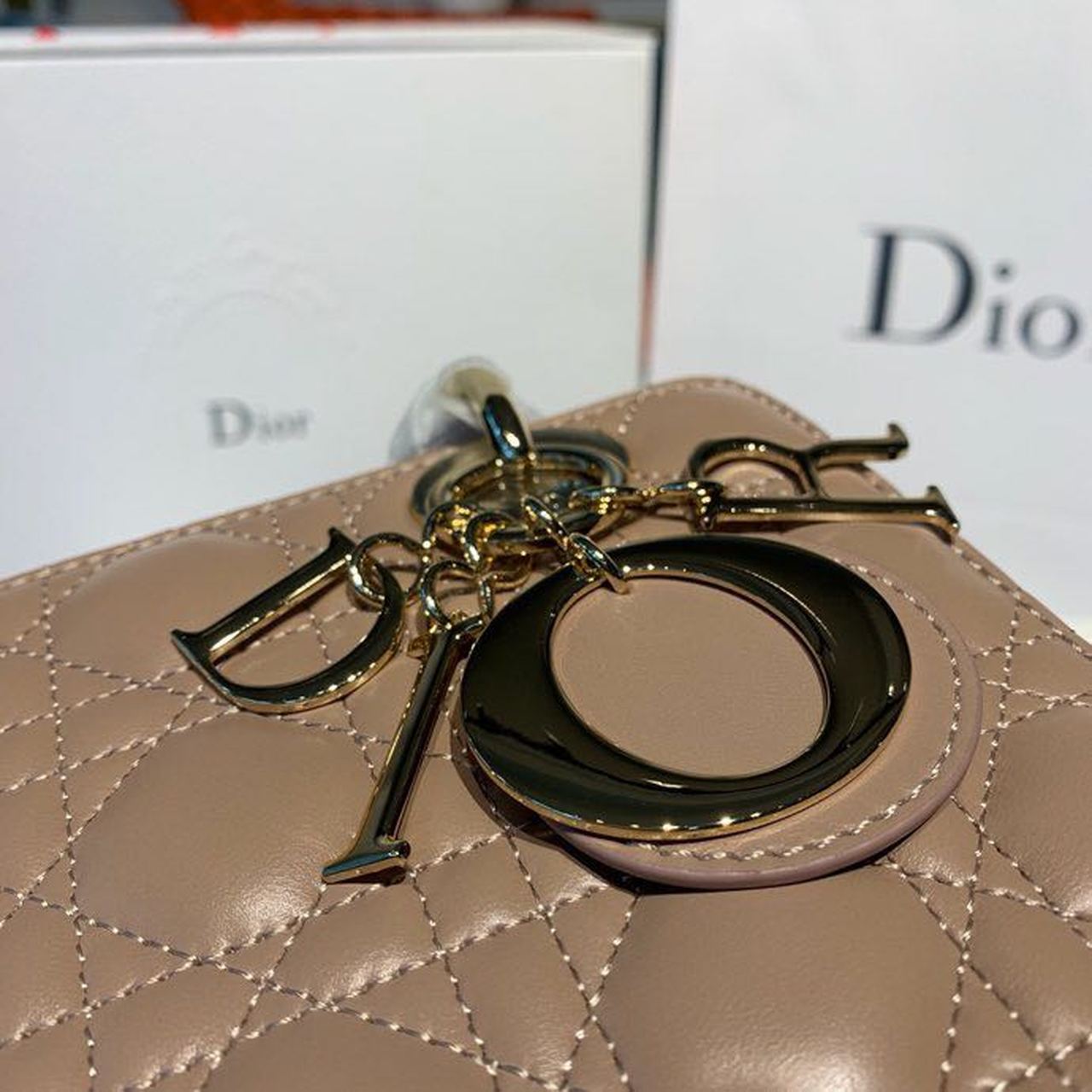 CHRSTN DR Small Lady DYOR Bag Gold toned hardware Beige For Women 8in/20cm CD