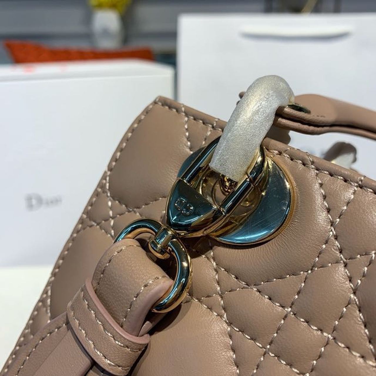 DI Small Lady Bag Gold Toned Hardware Beige For Women 8in/20cm CD