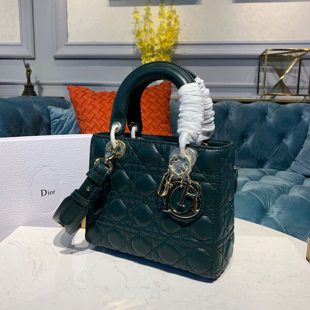 DI Small Lady Bag Gold Toned Hardware Forest Green For Women 8in/20cm CD