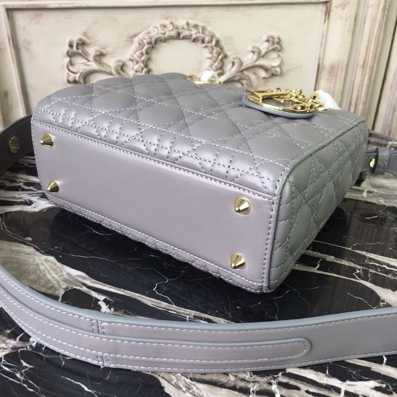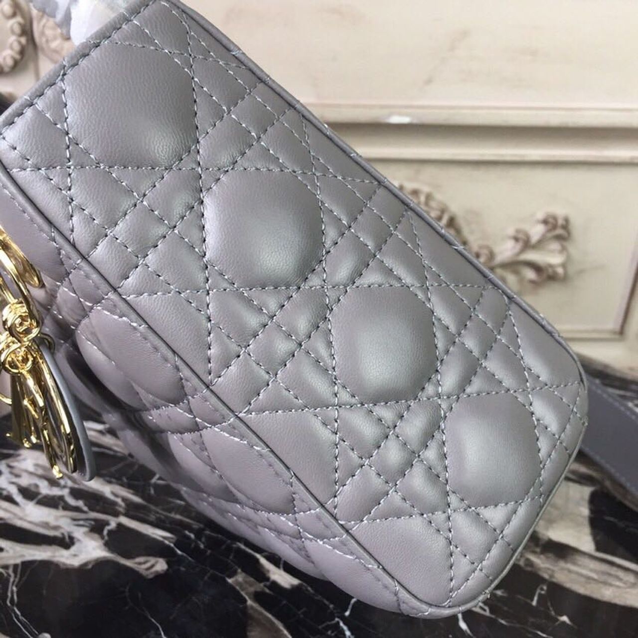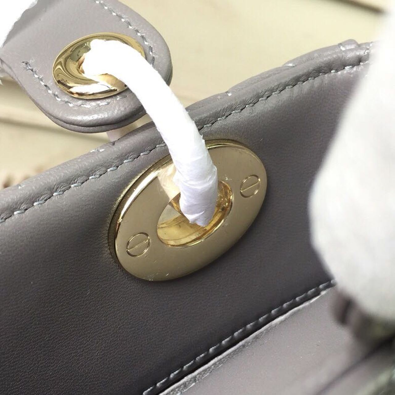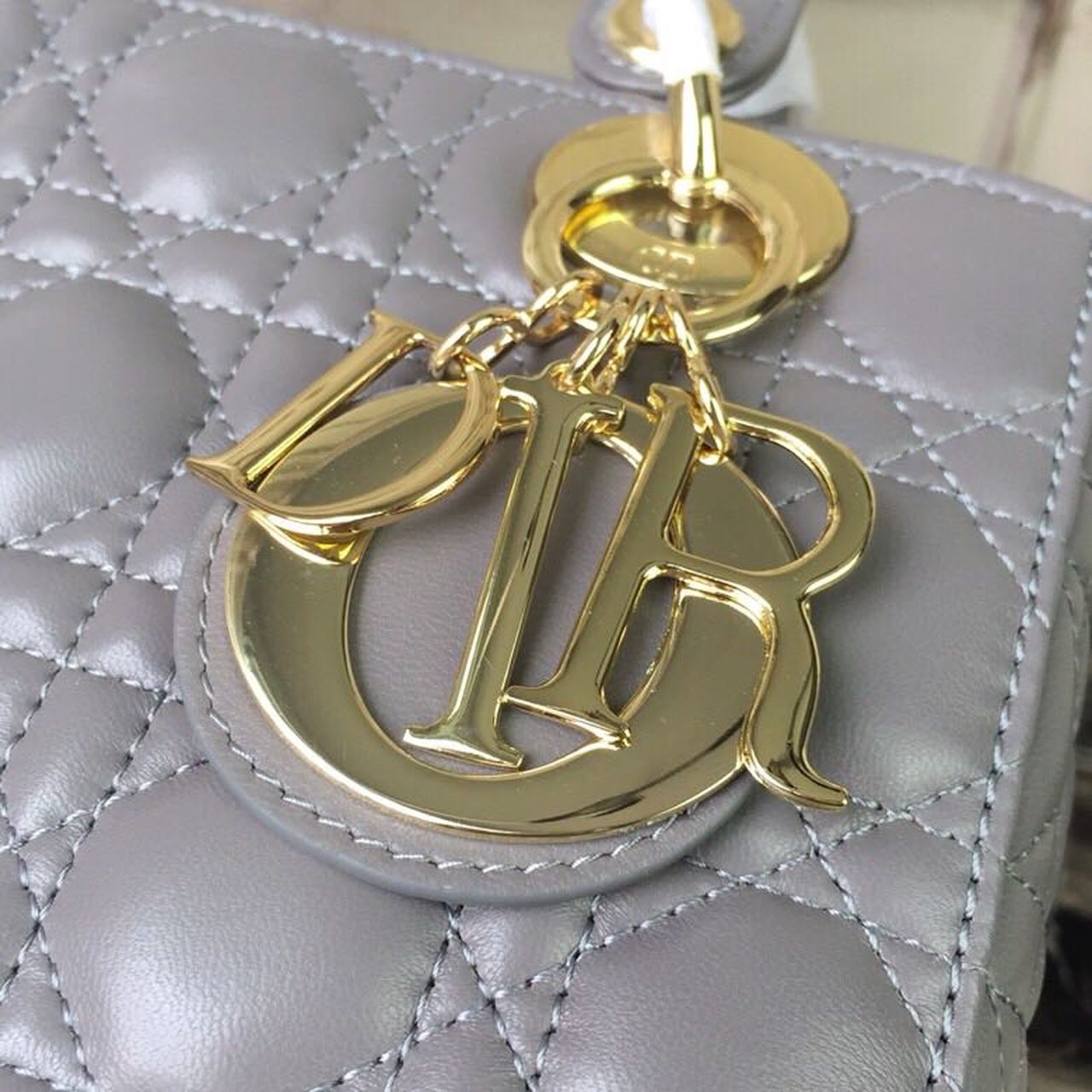 DI Small Lady Bag Gold Toned Hardware Grey For Women 20cm/8in CD