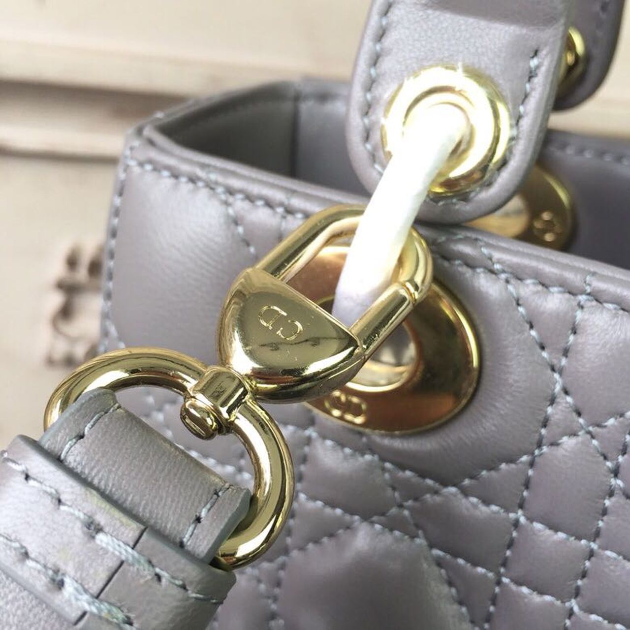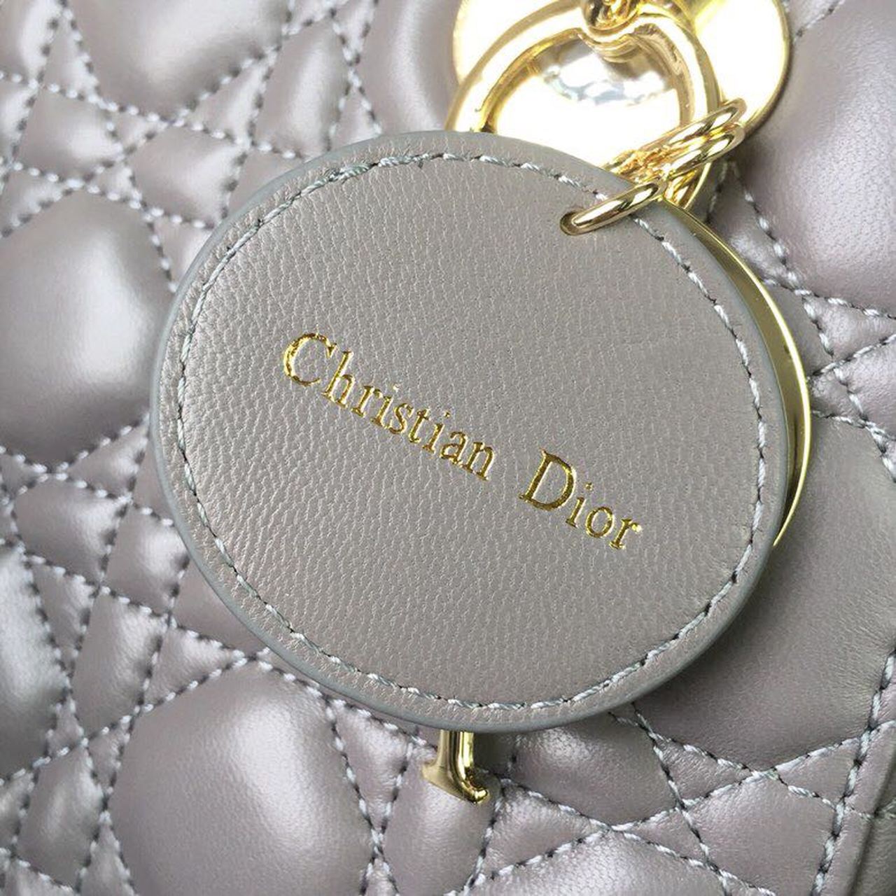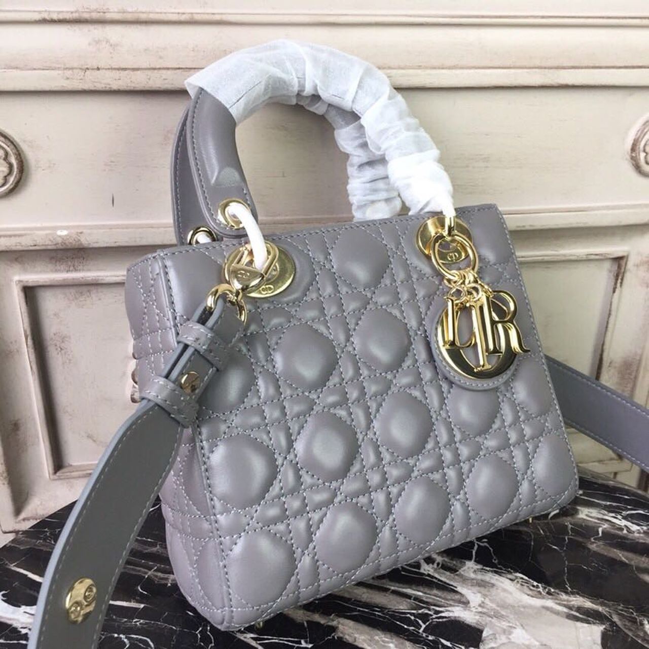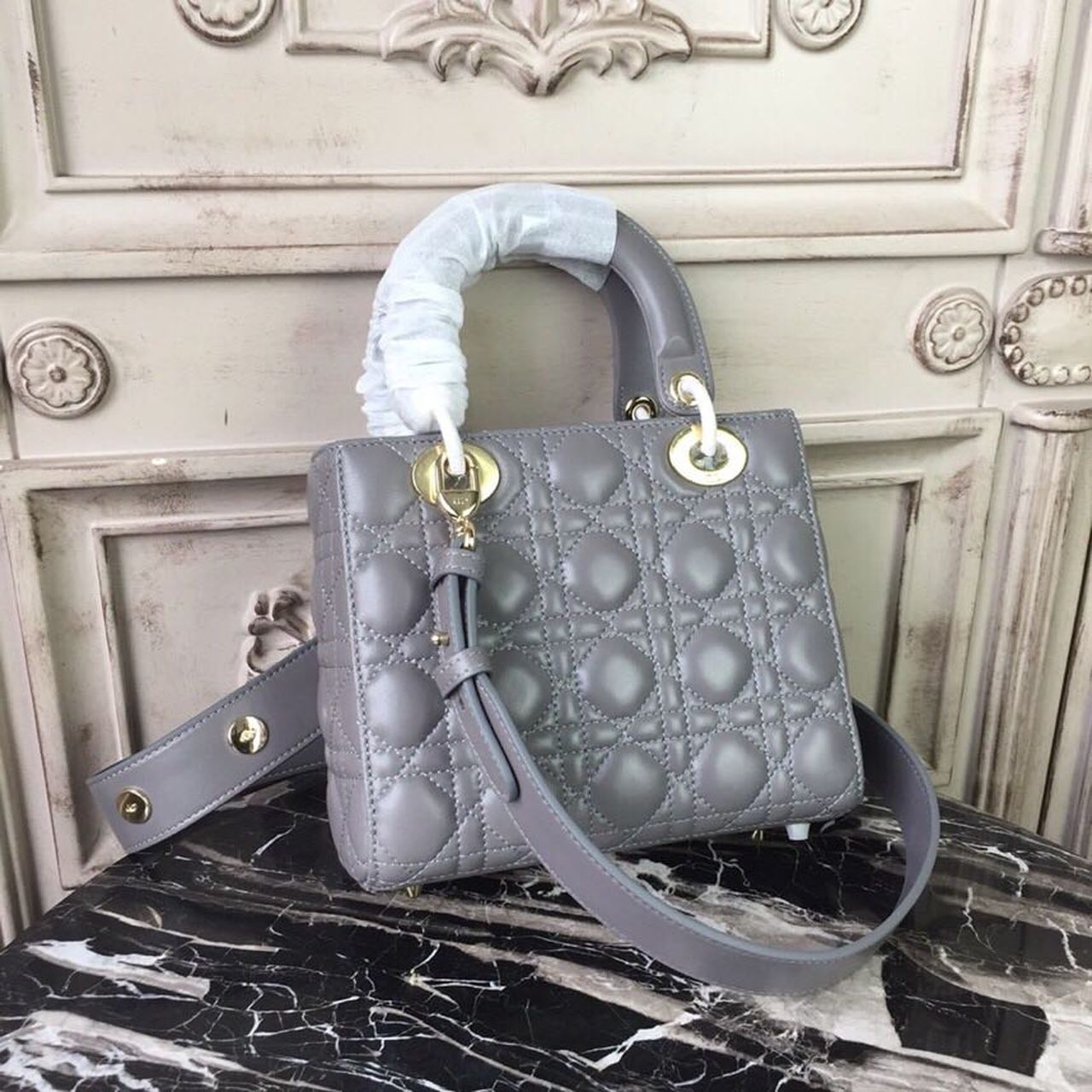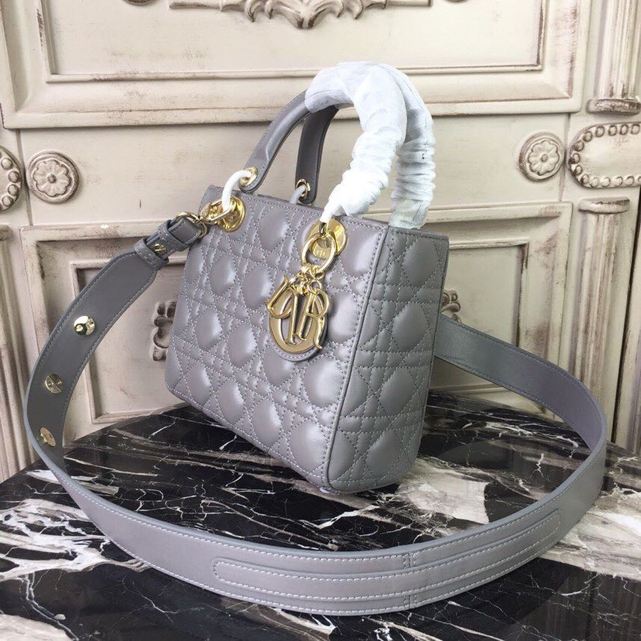 DI Small Lady Bag Gold Toned Hardware Grey For Women 20cm/8in CD