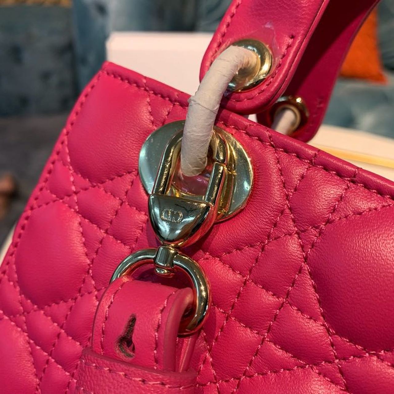 DI Small Lady Bag Gold Toned Hardware Hot Pink For Women 8in/20cm CD