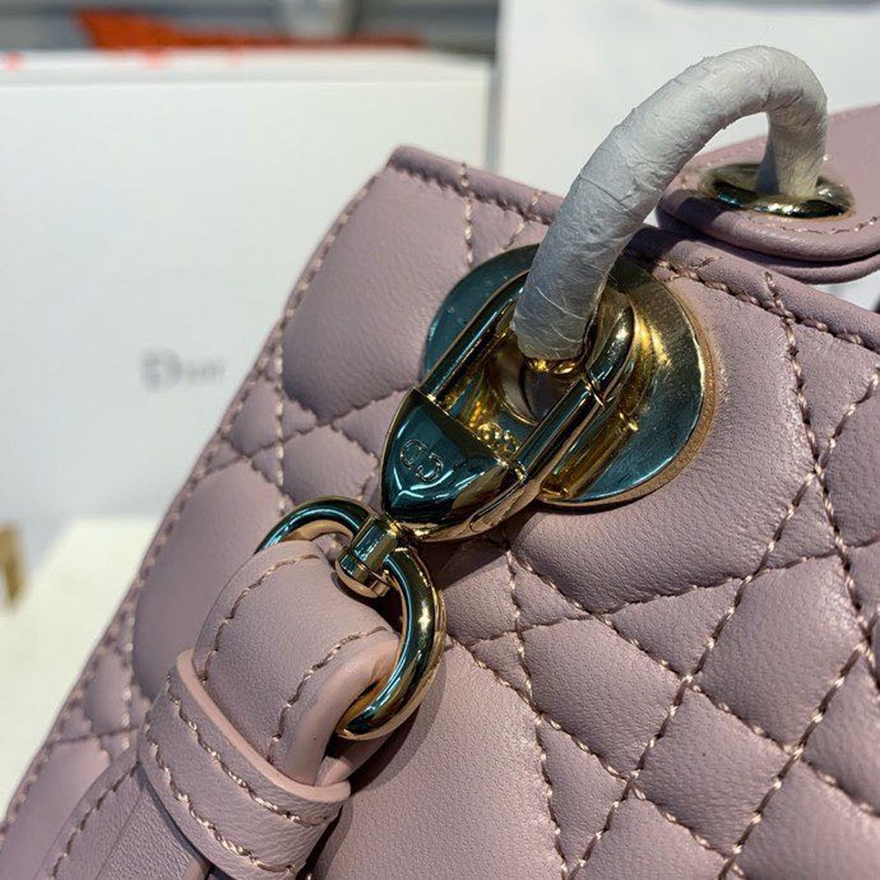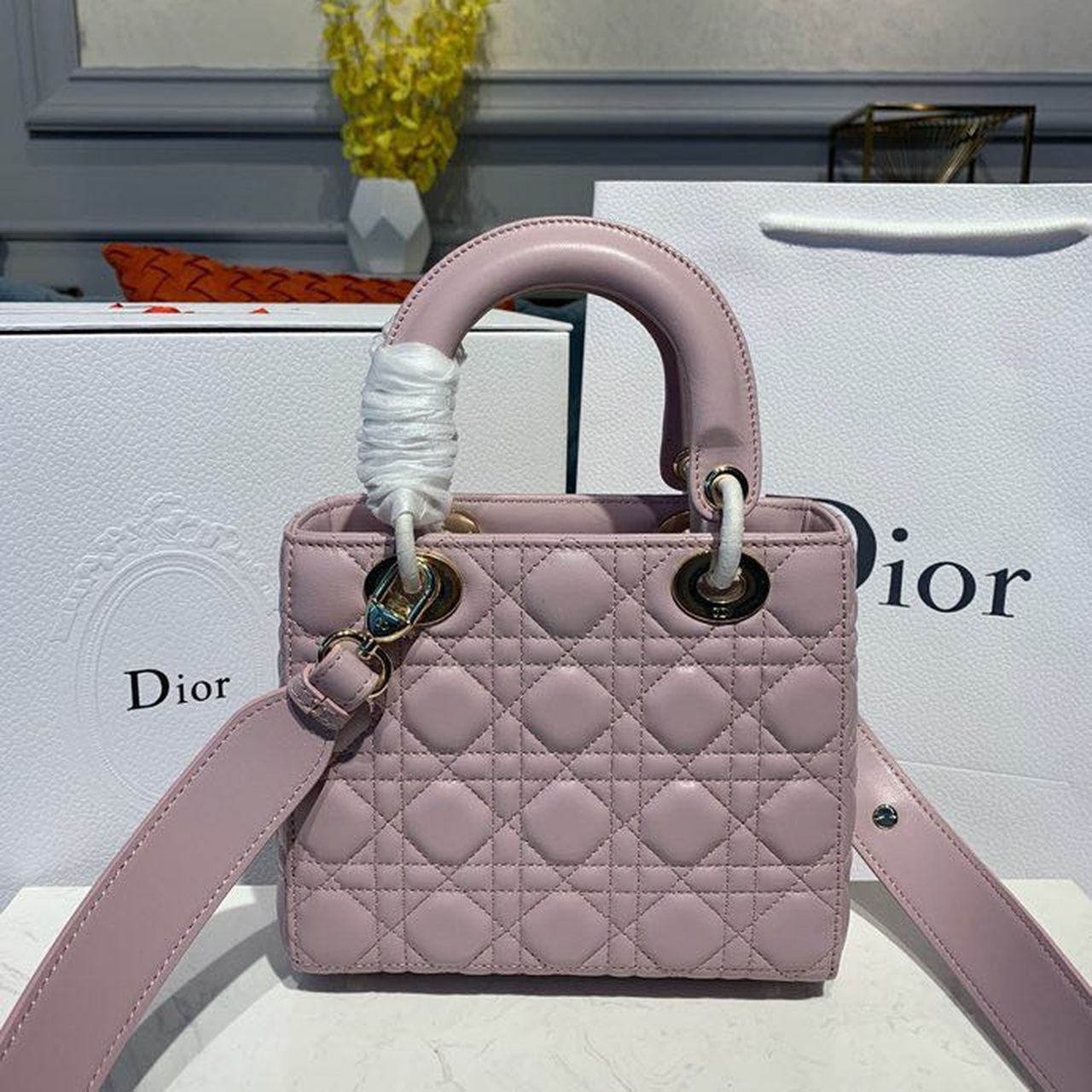 The Lady DYOR handbag epitomizes the House’s vision of elegance and beauty. Refined and sleek, the timeless creation is crafted in blush and covered with Cannage stitching, creating an instantly recognizable quilted texture. The pale gold-finish metal ‘D.I.O.R.’ charms embellish and illuminate its silhouette. Featuring a removable shoulder strap, the miniature Lady DYOR bag can be carried by hand or worn crossbody as an ideal evening wear companion.