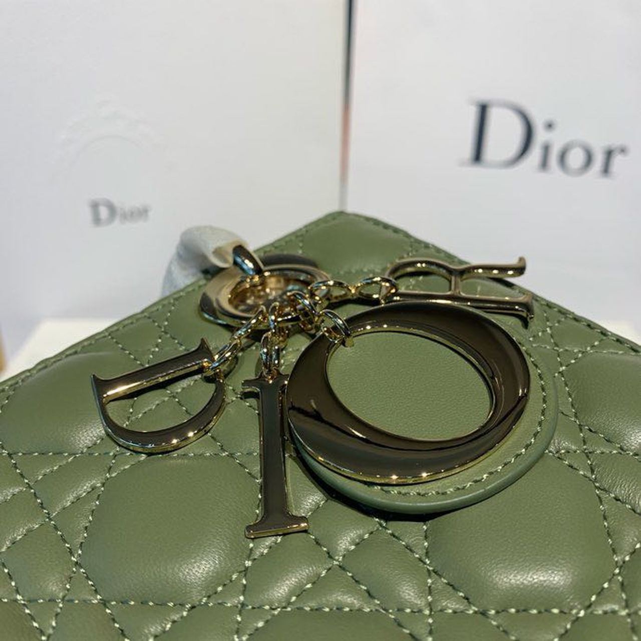 CHRSTN DR Small Lady DYOR Bag Gold toned hardware Olive Green For Women 8in/20cm CD