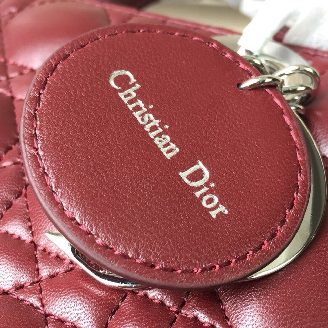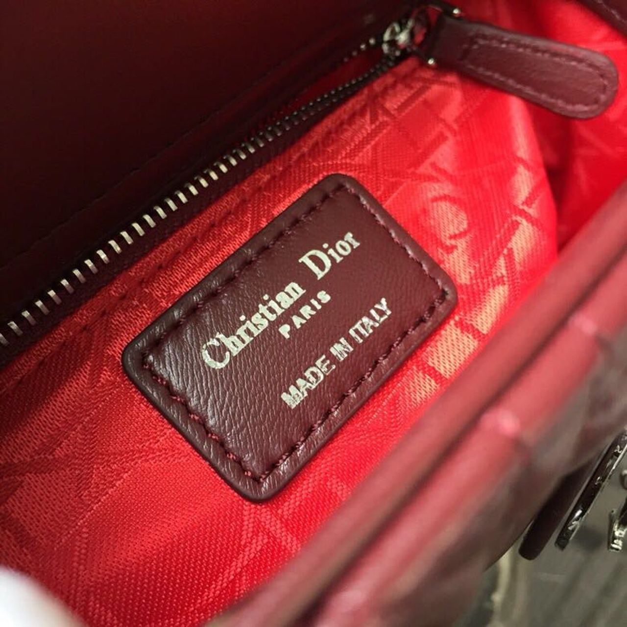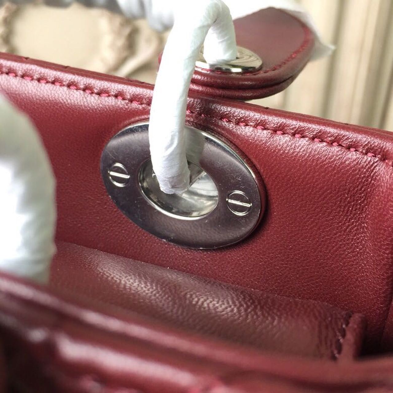 DI Small Lady Bag Silver Hardware Burgundy For Women 8in/20cm CD