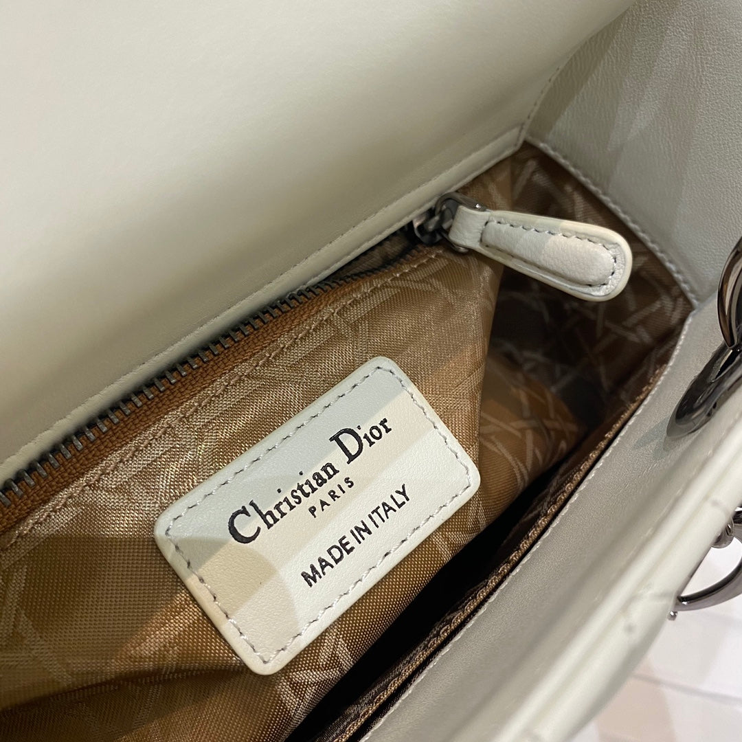 DI Small Lady Bag Silver Hardware, White, For Women Women’s Handbags, Crossbody Bags, 20cm CD