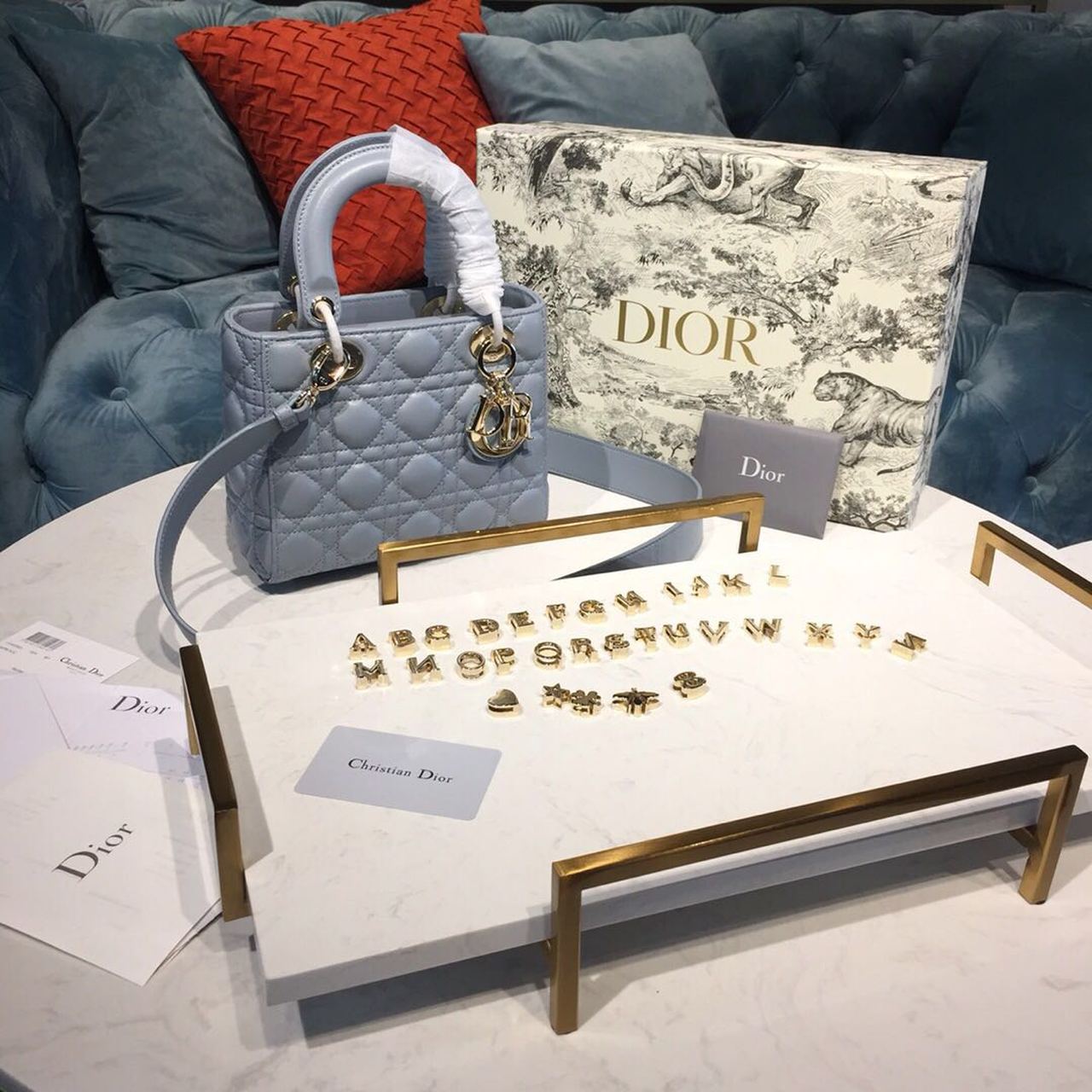 CHRSTN DR Medium Lady DYOR My ABCDYOR Bag Denim Blue Cannage For Women 20cm/8in CD M0538OCAL_M90B