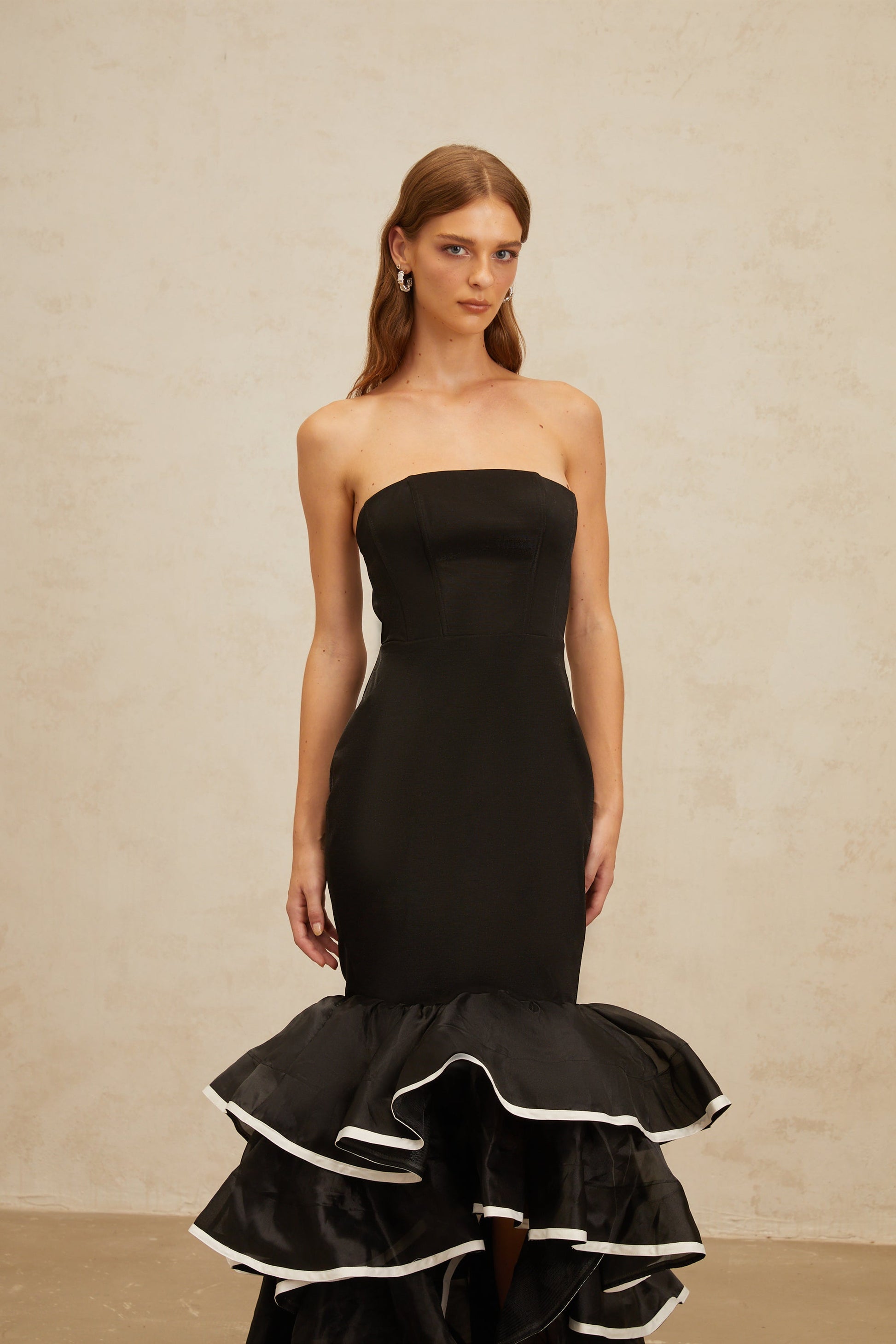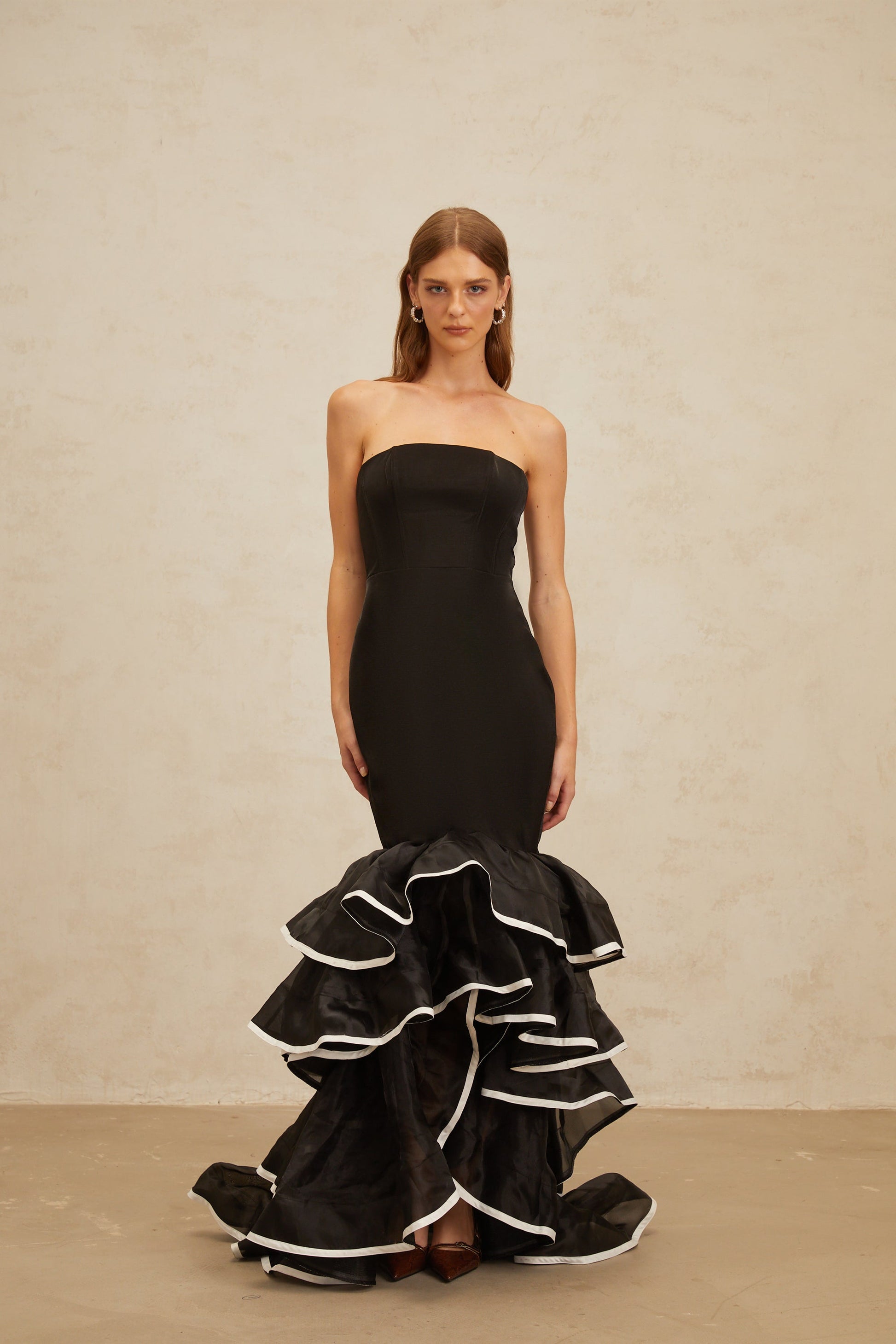 Dianthe Black Ruffled Mermaid Tiered Maxi Dress