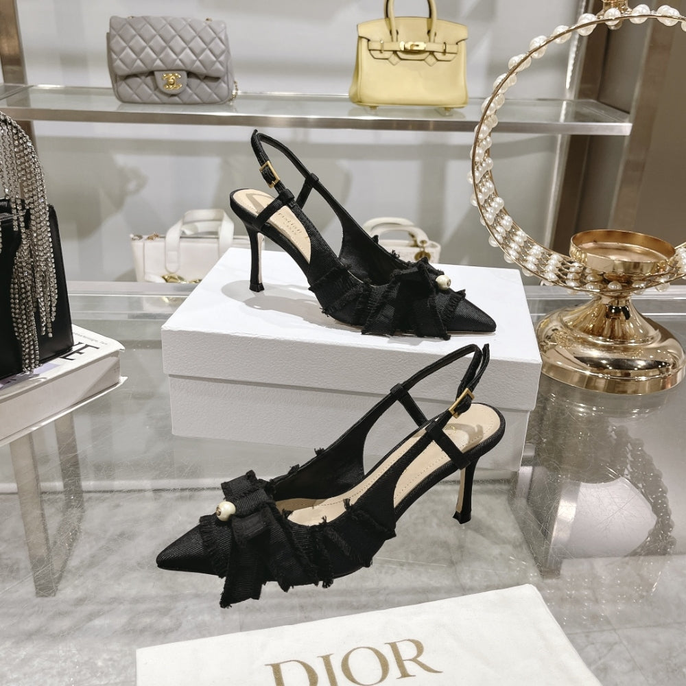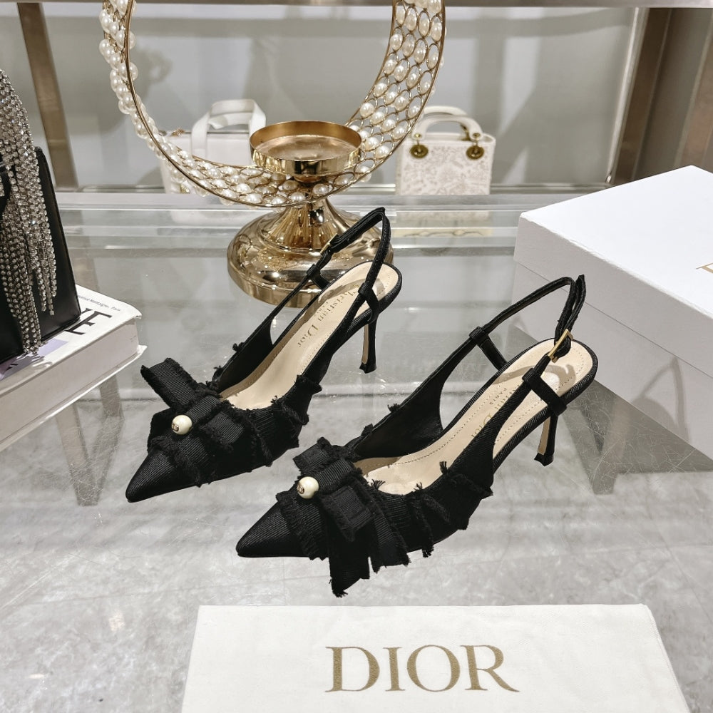 DIOR ADIORABLE SLINGBACK PUMP BLACK FRINGED GROSGRAIN KDV225GGN S900
