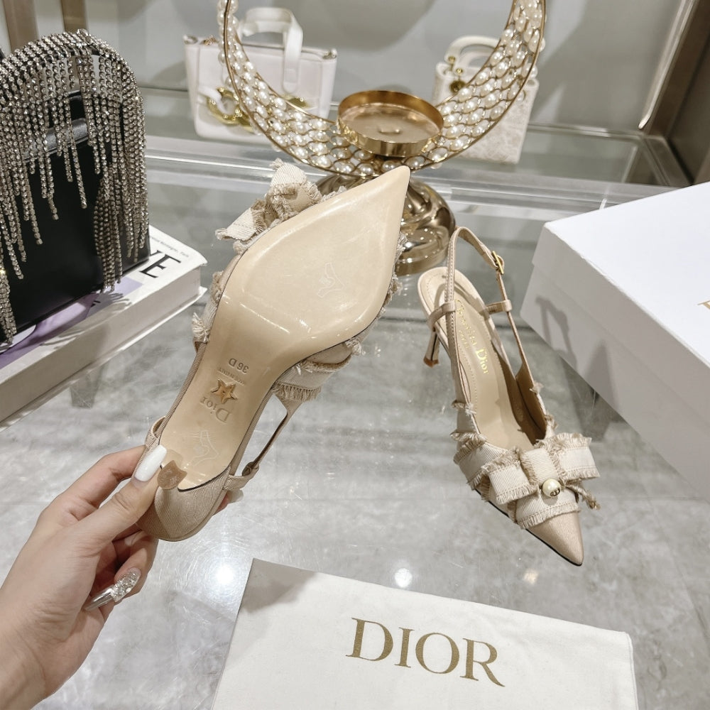 DIOR ADIORABLE SLINGBACK PUMP NUDE FRINGED GROSGRAIN