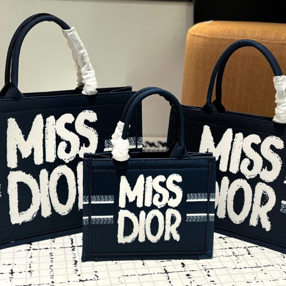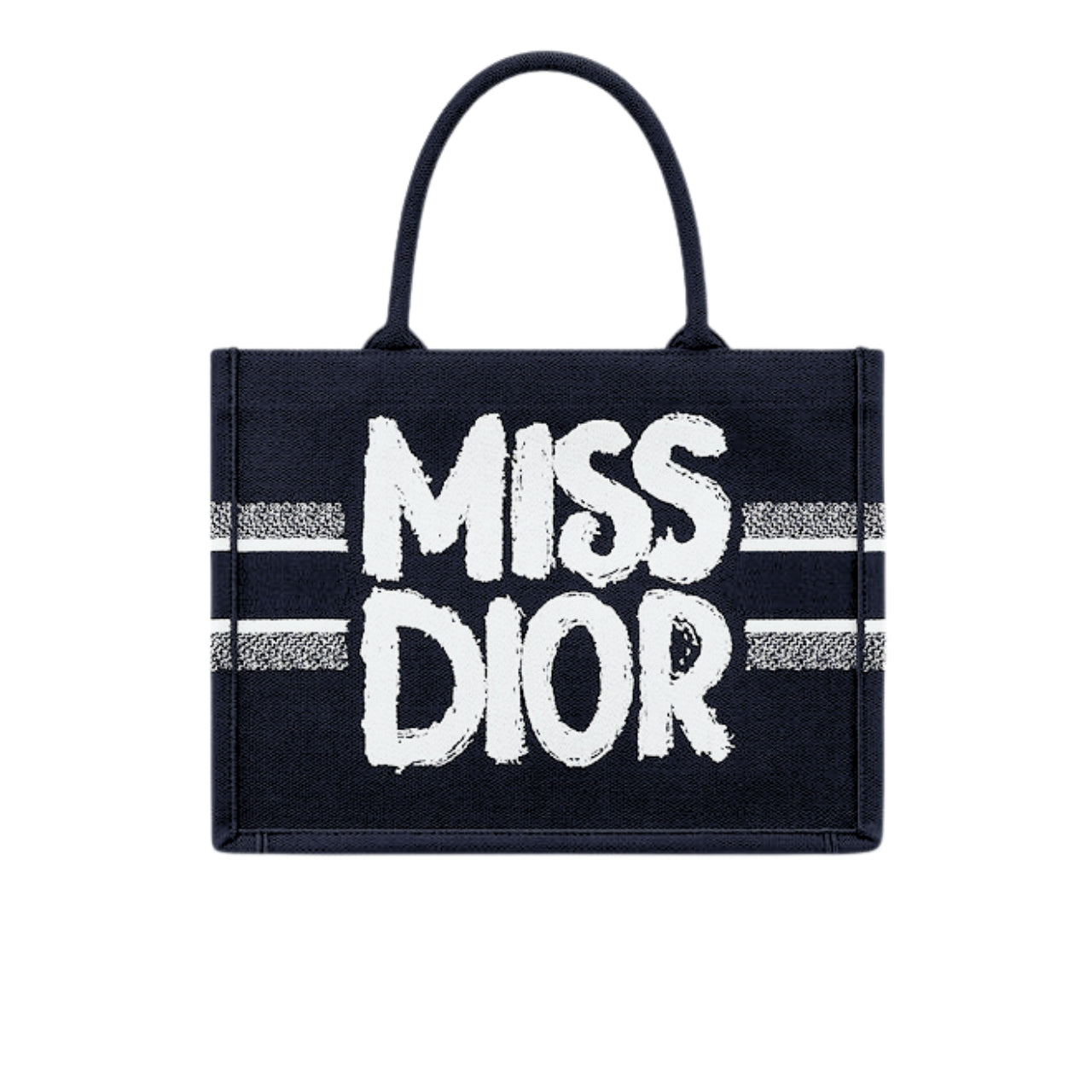 DIOR BOOK TOTE MISS DIOR GRAFFITI EMBROIDERY DARK BLUE 41CM