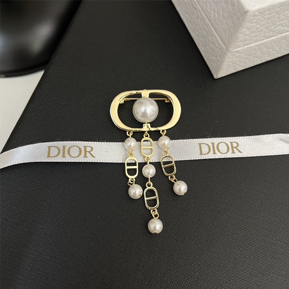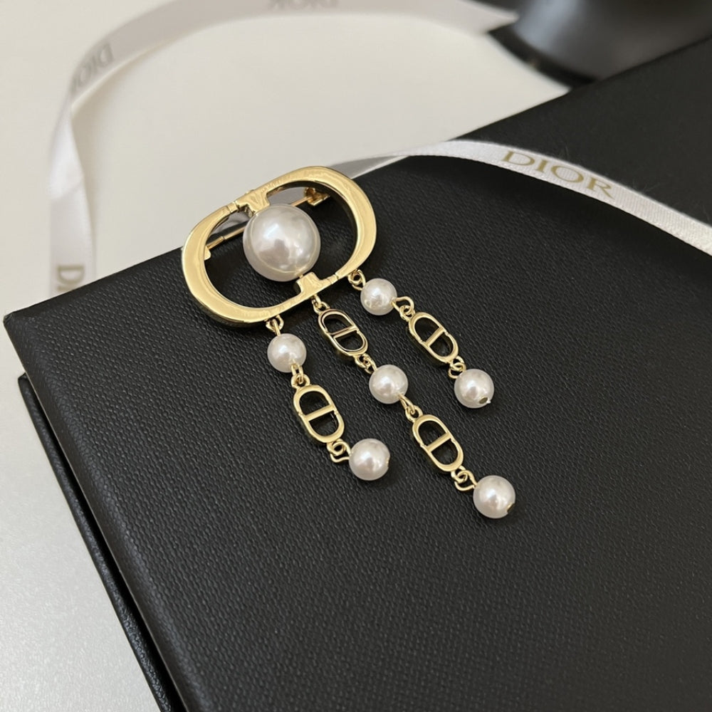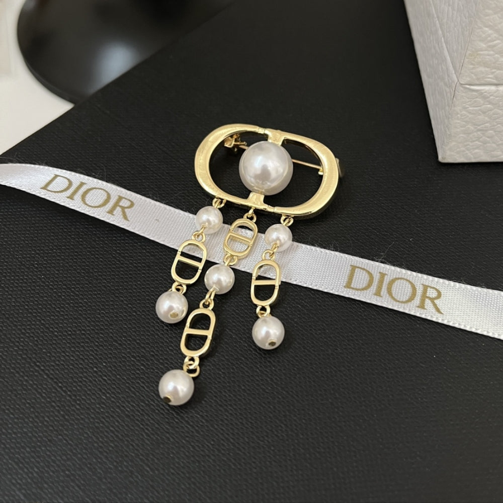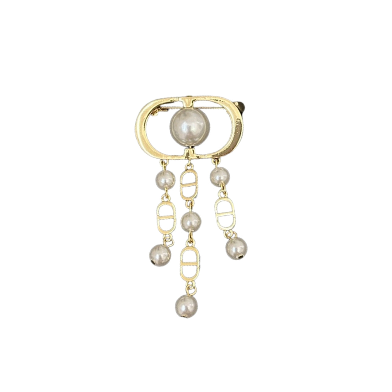 DIOR CD BROOCH GOLD WITH THREE STRINGS AND PEARLS