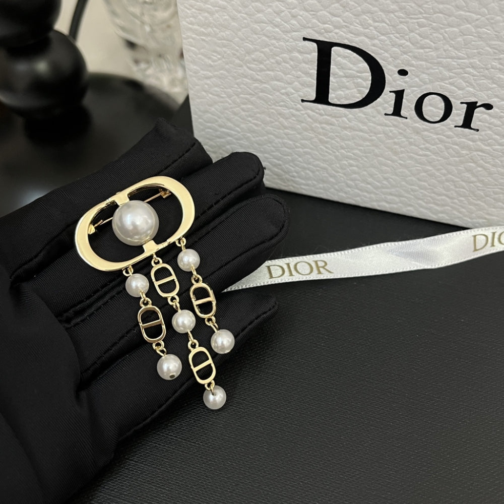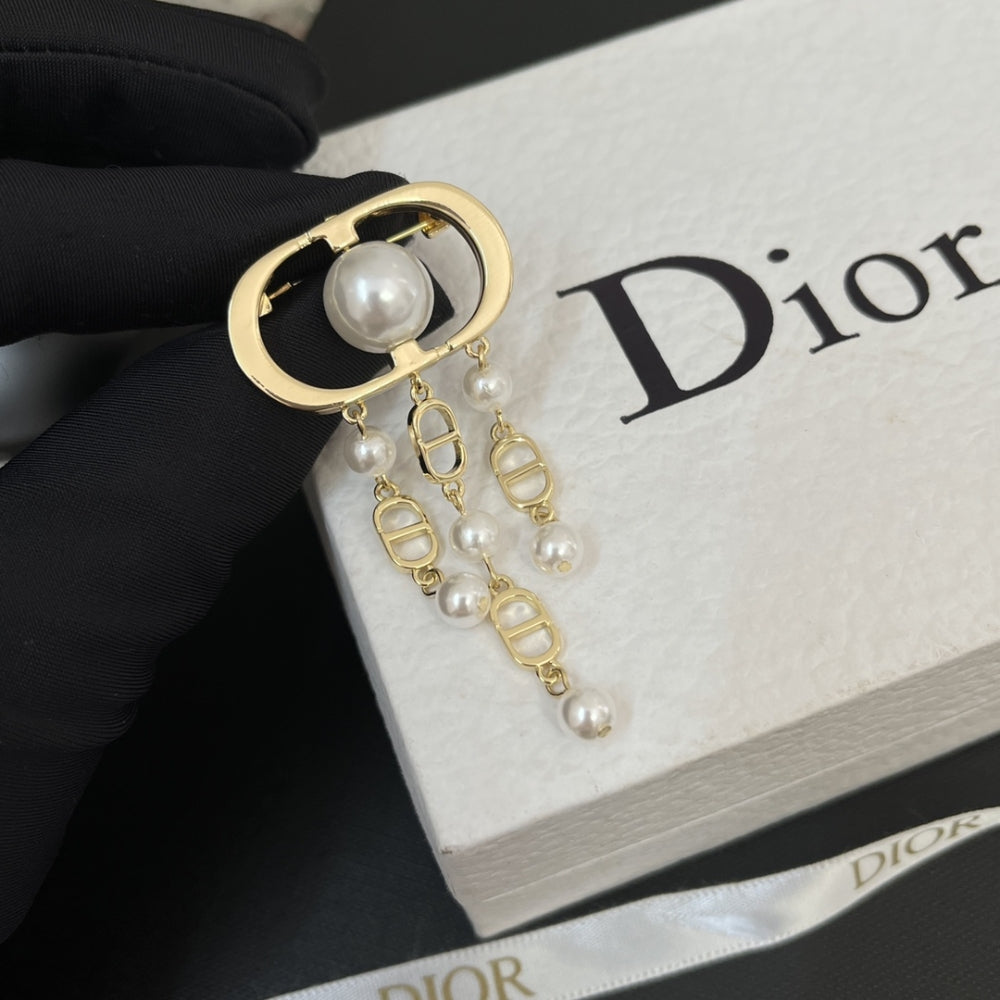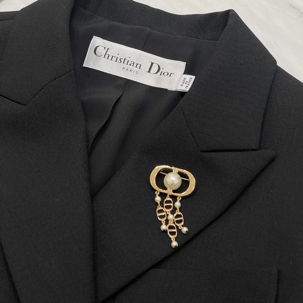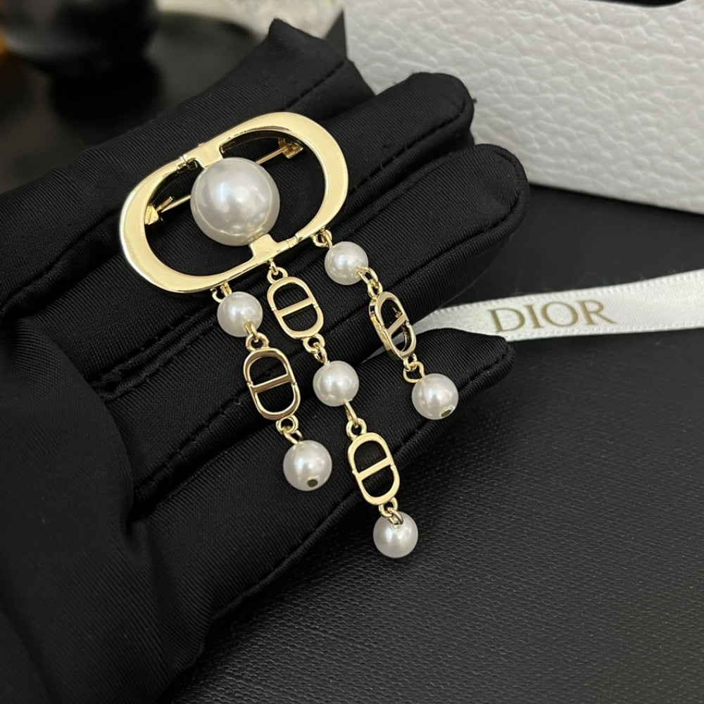 DIOR CD BROOCH GOLD WITH THREE STRINGS AND PEARLS
