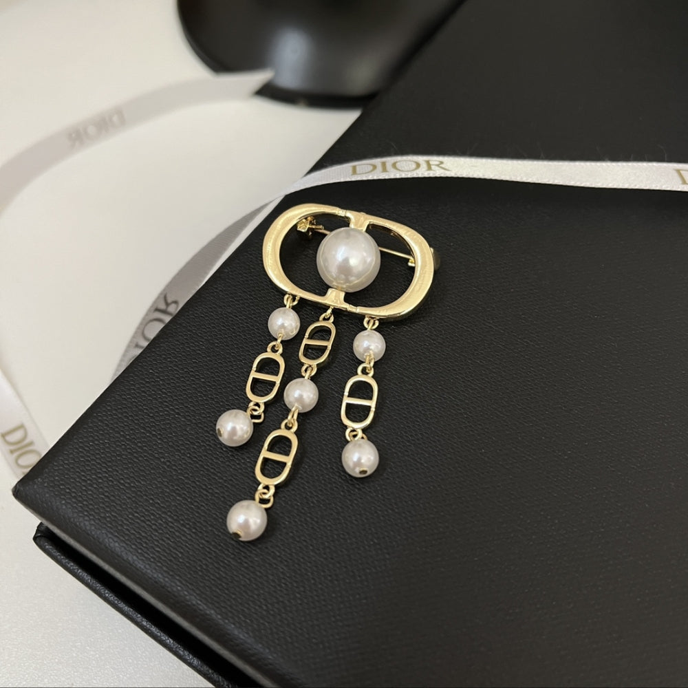 Increase quantity for DIOR CD BROOCH GOLD WITH THREE STRINGS AND PEARLS
