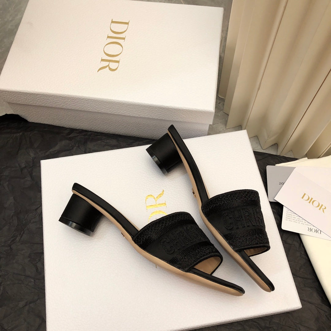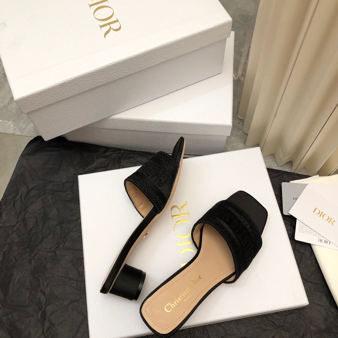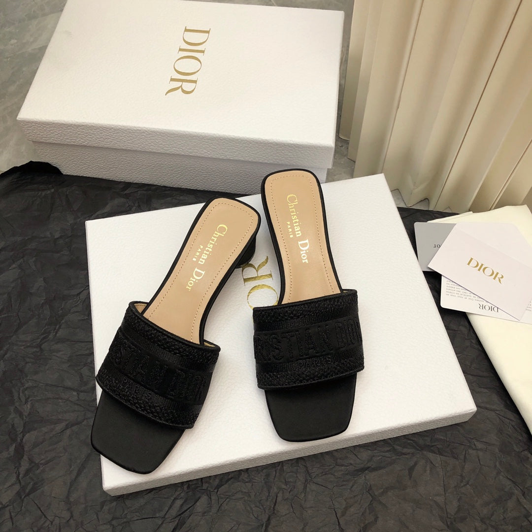 DIOR DWAY HEELED SLIDE DWAY HEELED SLIDE BLACK EMBROIDERED SATIN AND COTTON