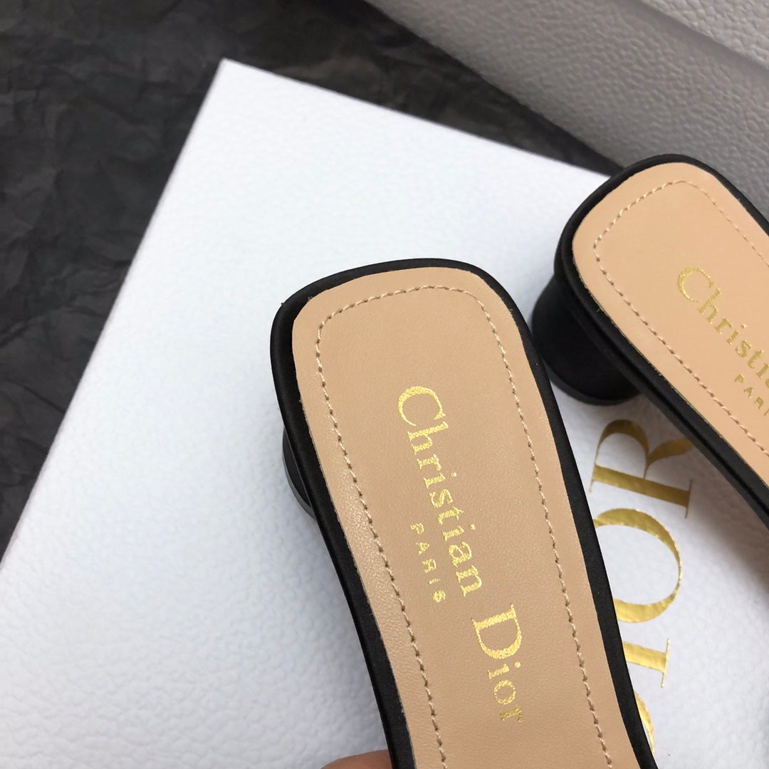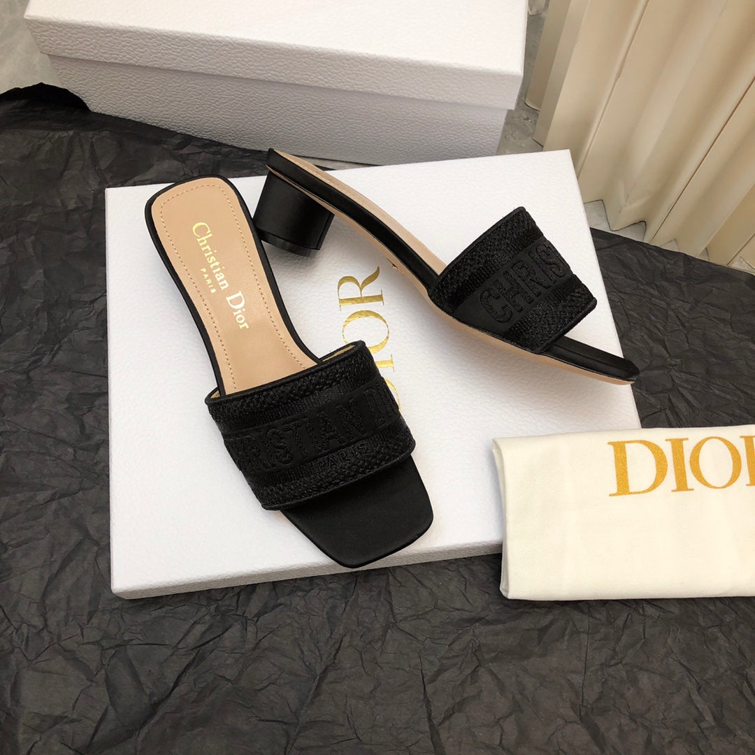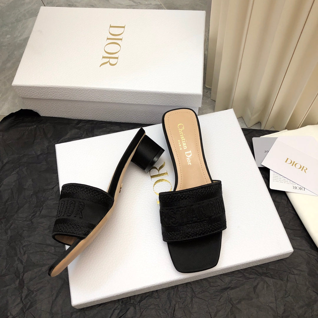 DIOR DWAY HEELED SLIDE DWAY HEELED SLIDE BLACK EMBROIDERED SATIN AND COTTON