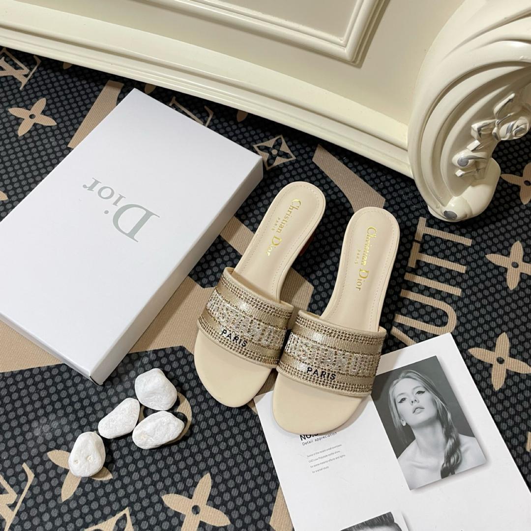 Decrease quantity for DIOR DWAY HEELED SLIDE GOLD TONE COTTON EMBROIDERED