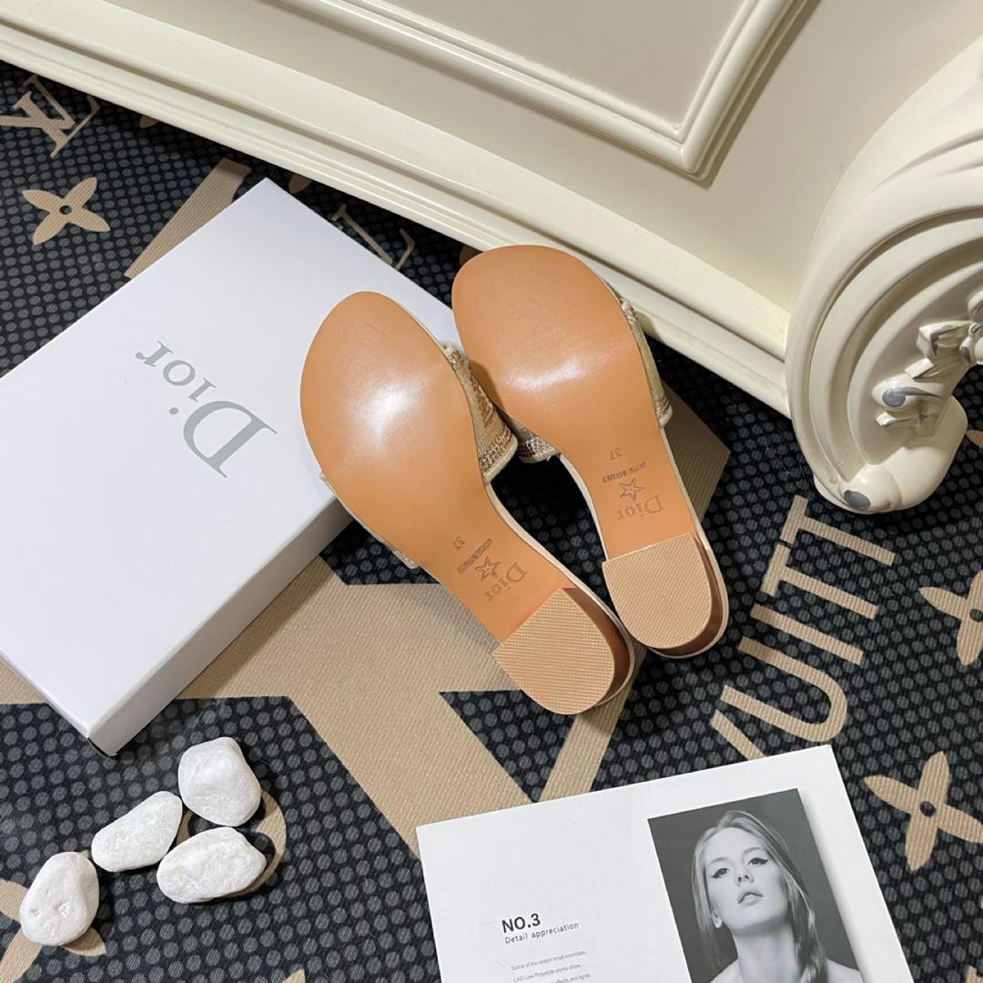 DIOR DWAY HEELED SLIDE GOLD TONE COTTON EMBROIDERED