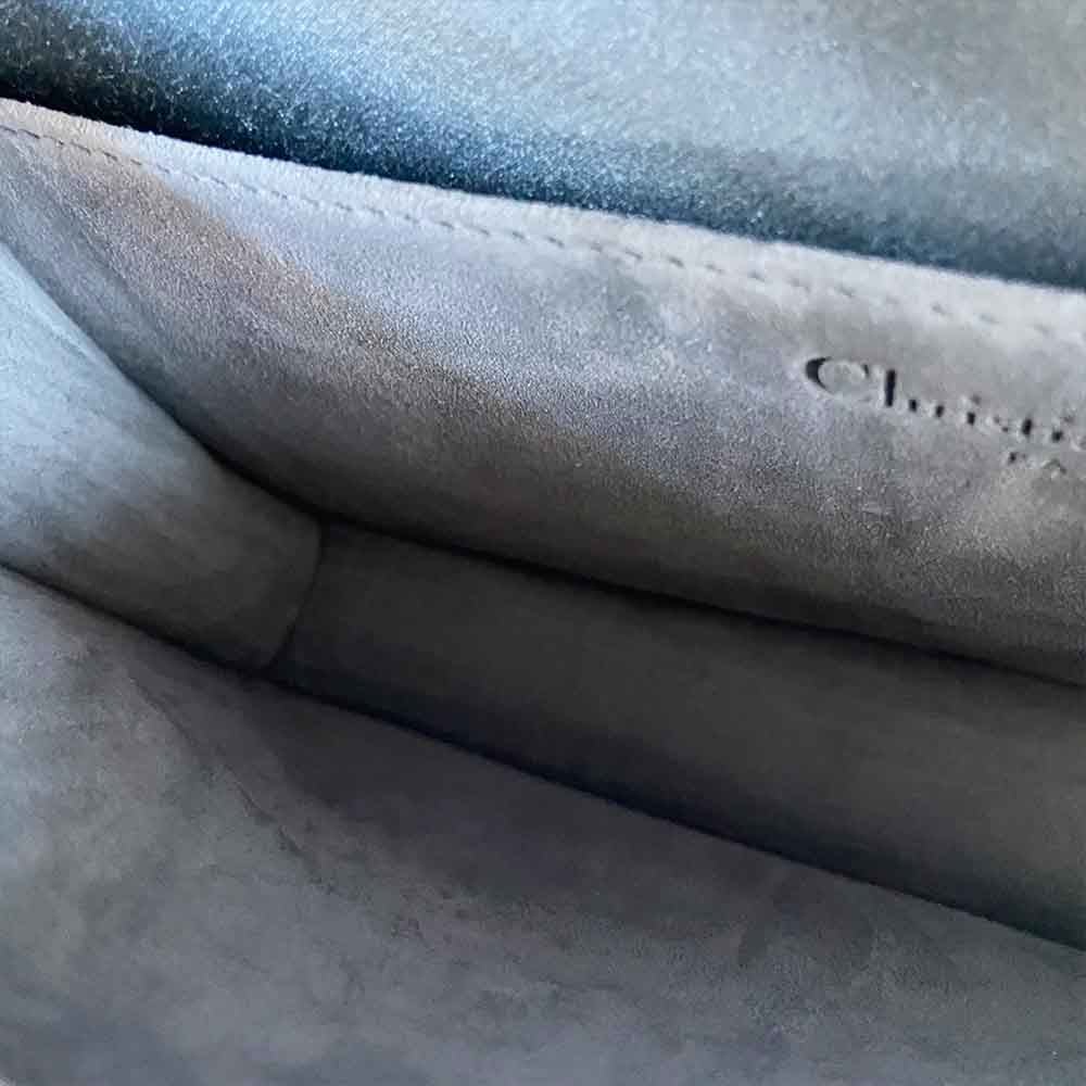 Description : The Lady Dior pouch crafted in iron grey satin, featuring emblematic Cannage topstitching and a detachable 'D.I.O.R.' crystal embellished charm. Can be worn with or without its chain strap and features two removable elements: a leather card holder and a leather zipped pouch.