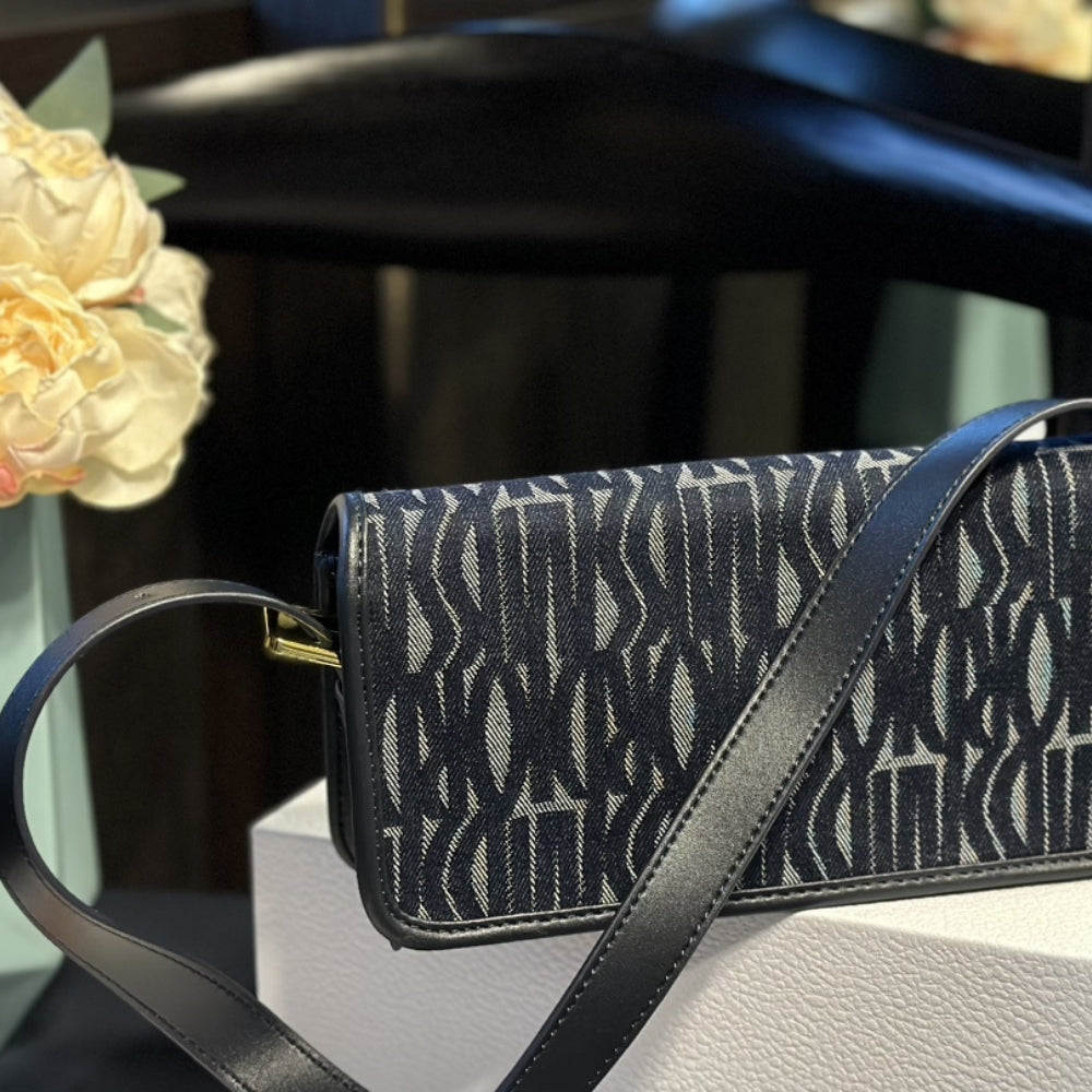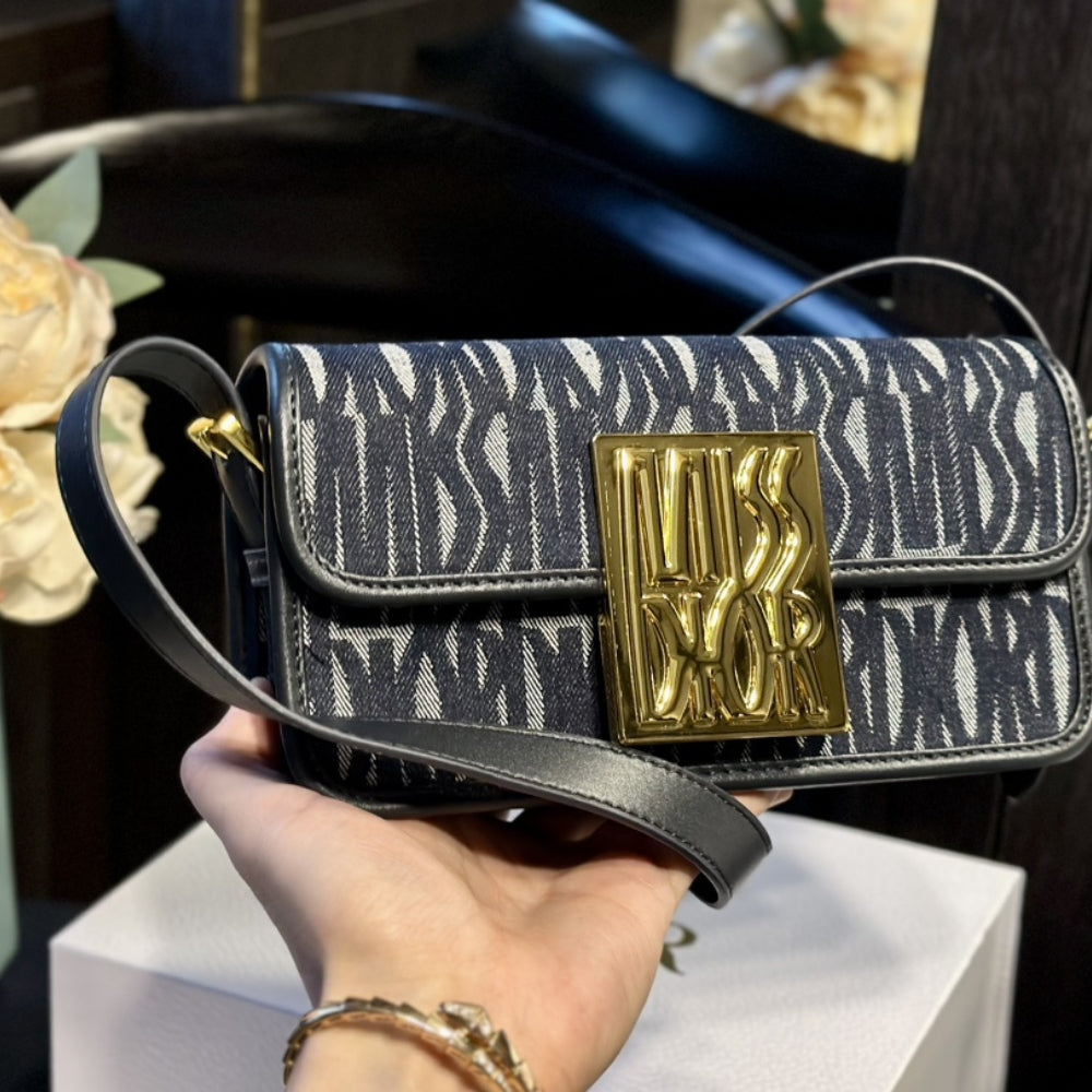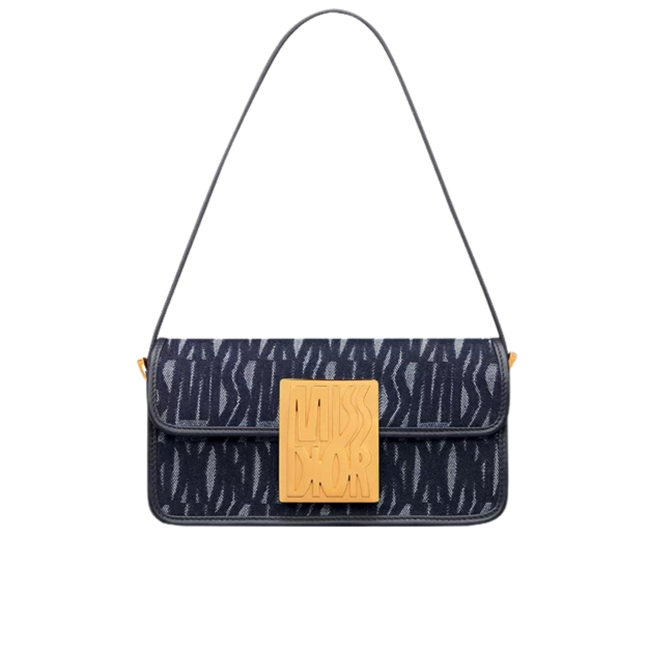 DIOR MISS DIOR FLAP BAG ALLOVER BLUE DENIM 22CM M2610UDXRM49E