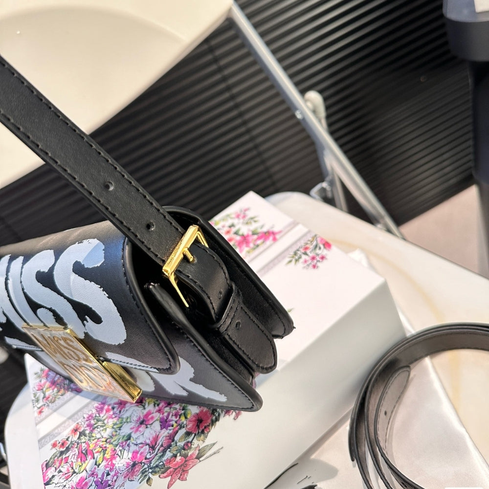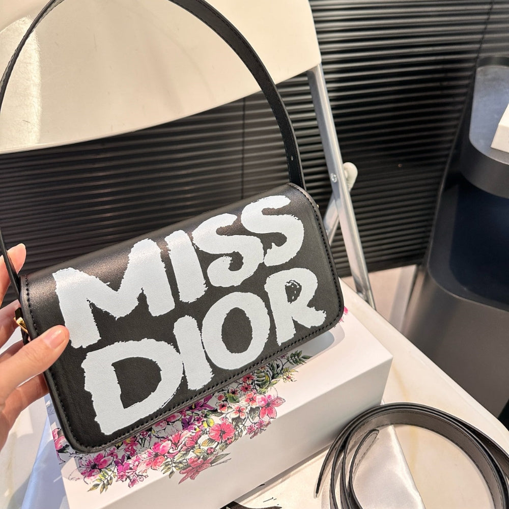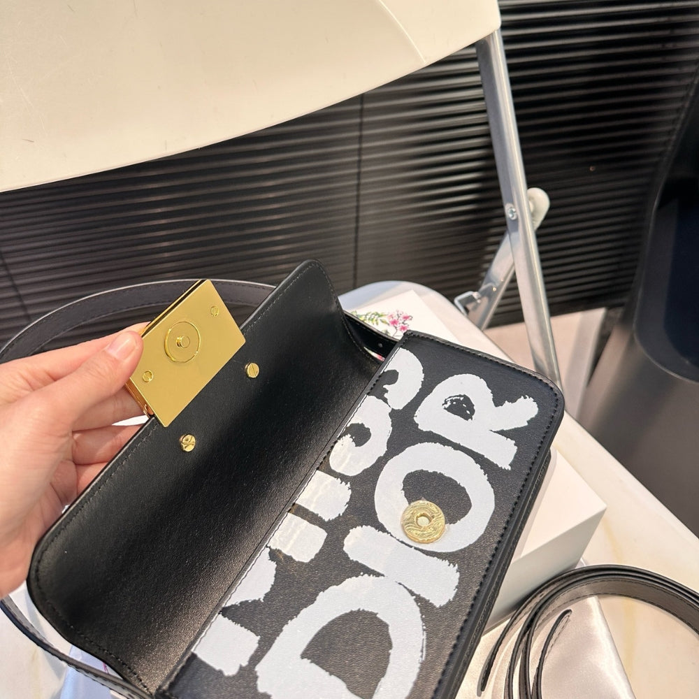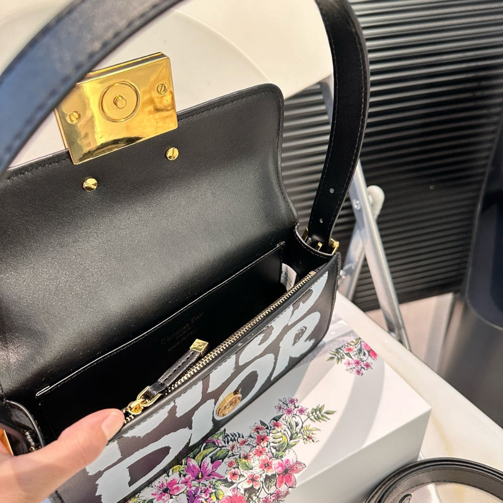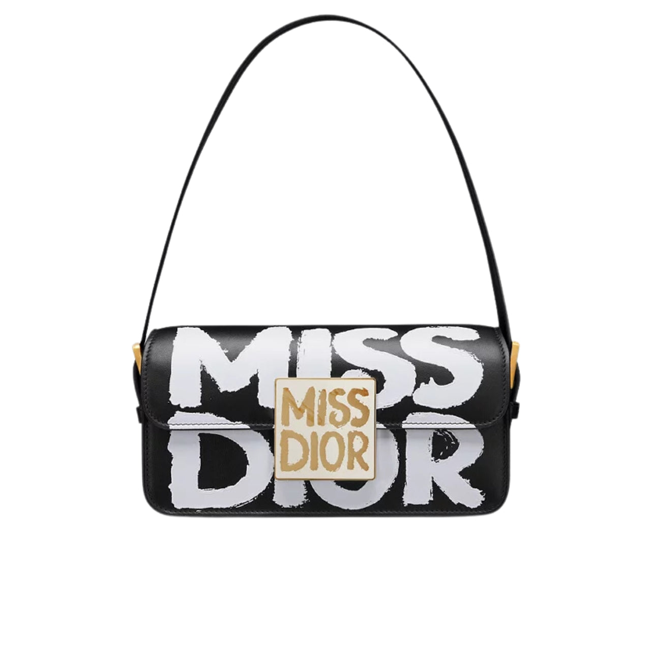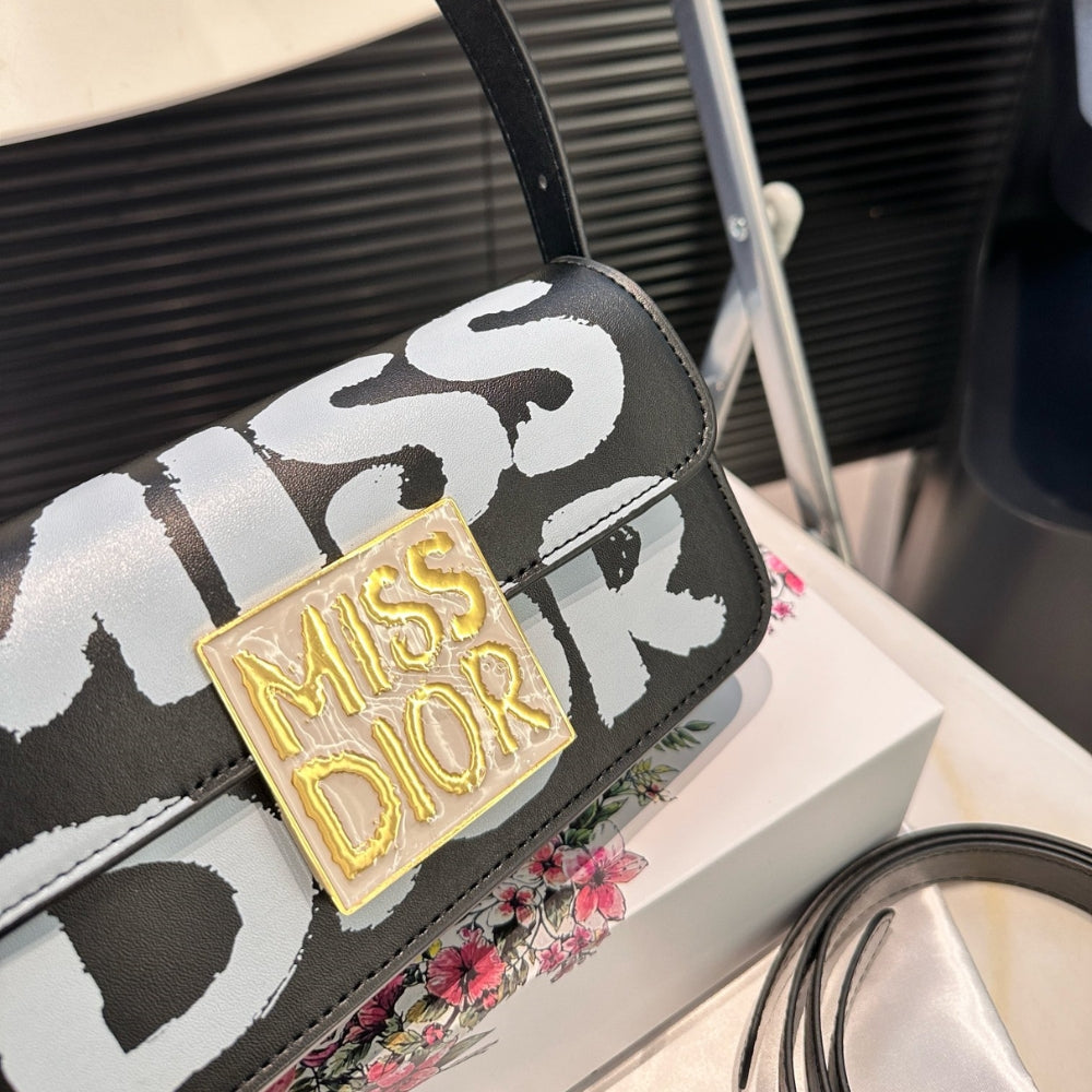 DIOR MISS DIOR FLAP BAG GRAFFITI PRINTED CALFSKIN BLACK AND WHITE 22CM M2610UZCJ M911