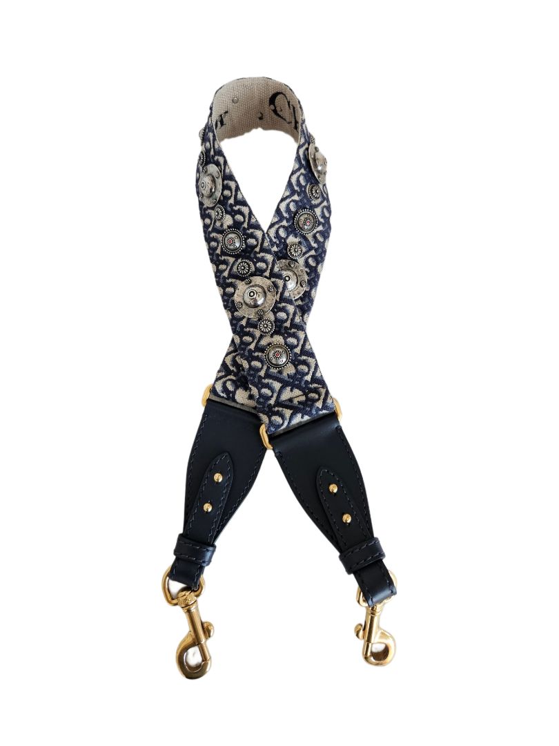 Dior navy blue leather saddle bag with embellished crossbody strap