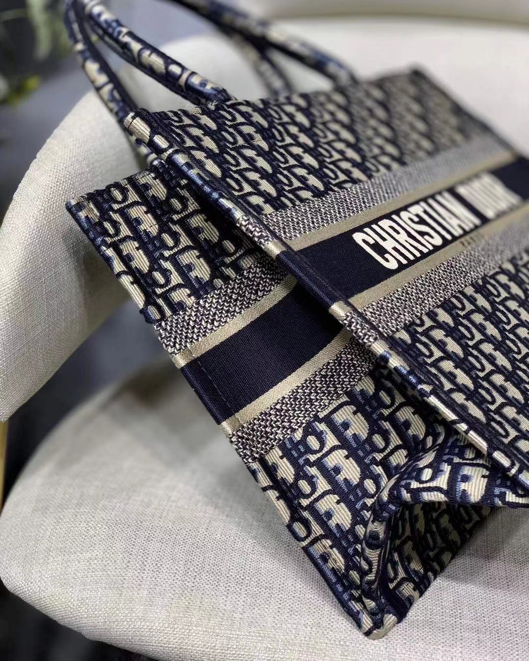 DIOR PERSONALIZED MEDIUM BOOK TOTE BLUE DIOR PERSONALIZED OBLIQUE EMBROIDERY 36CM M1296ZRIW M928