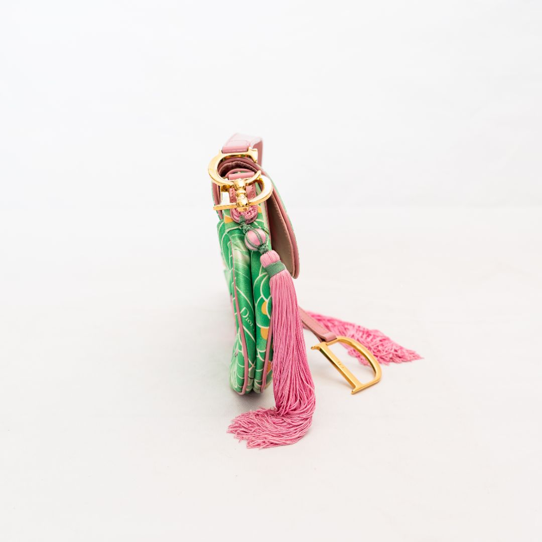"Dior Pink/Green printed satin glazed leather limited edition 0705 saddle bag"