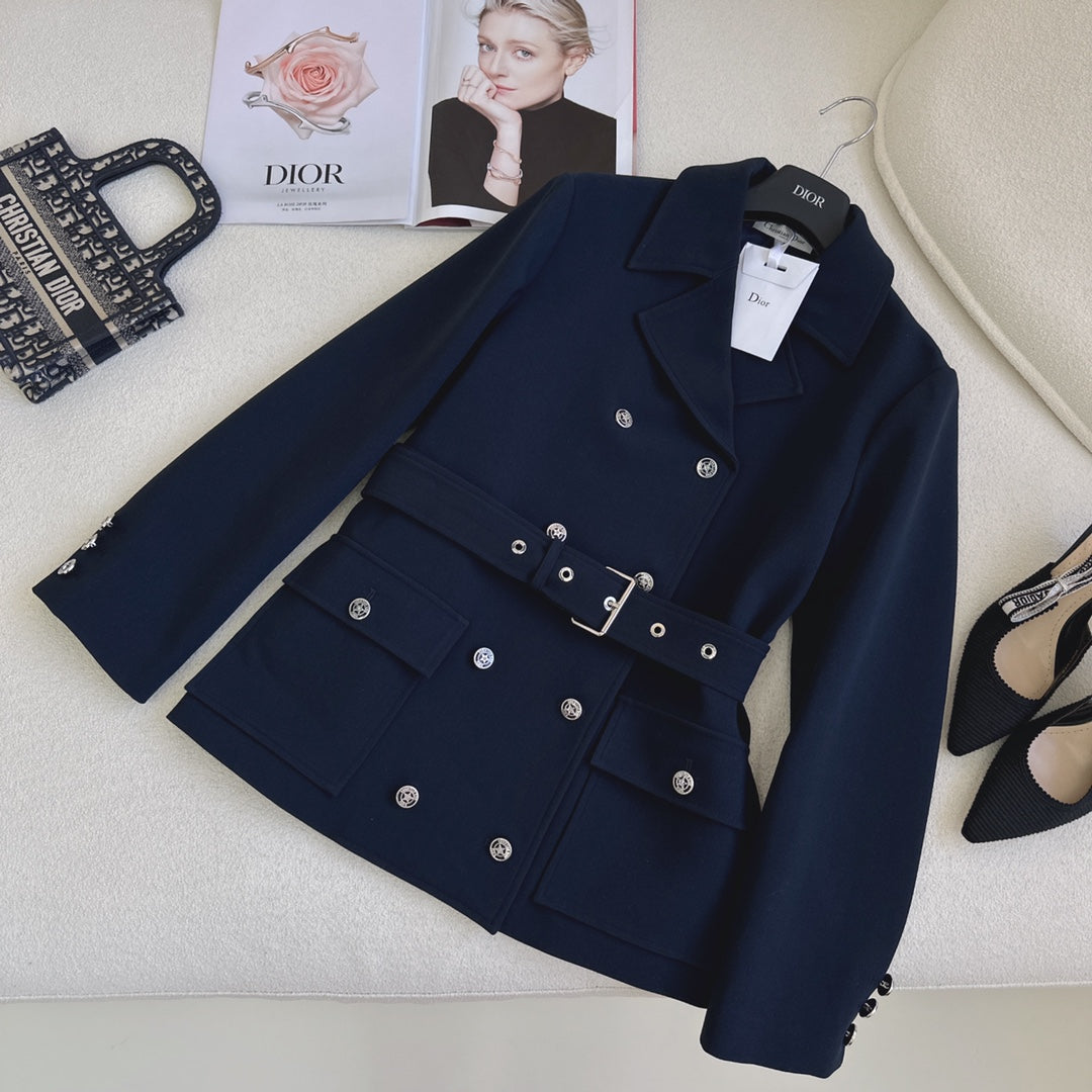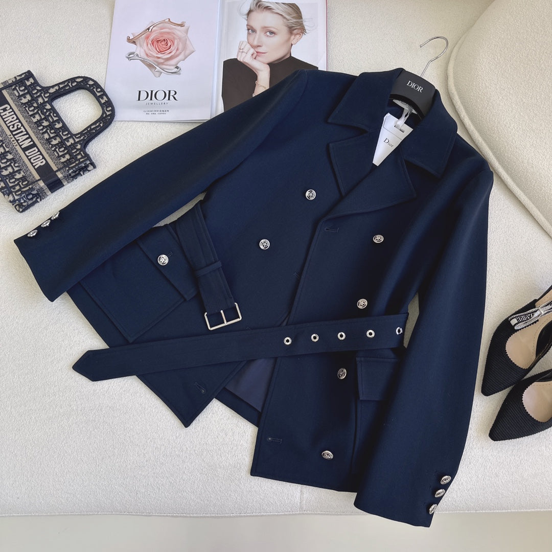 Decrease quantity for DIOR REVERSIBLE WOOL BLEND FELT COAT NAVY BLUE
