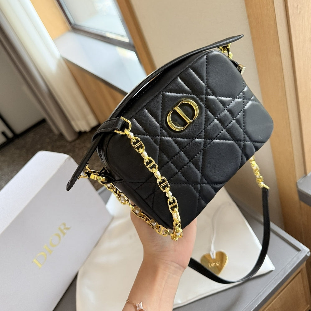 DIOR SMALL CARO TOP HANDLE CAMERA BAG BLACK 20CM